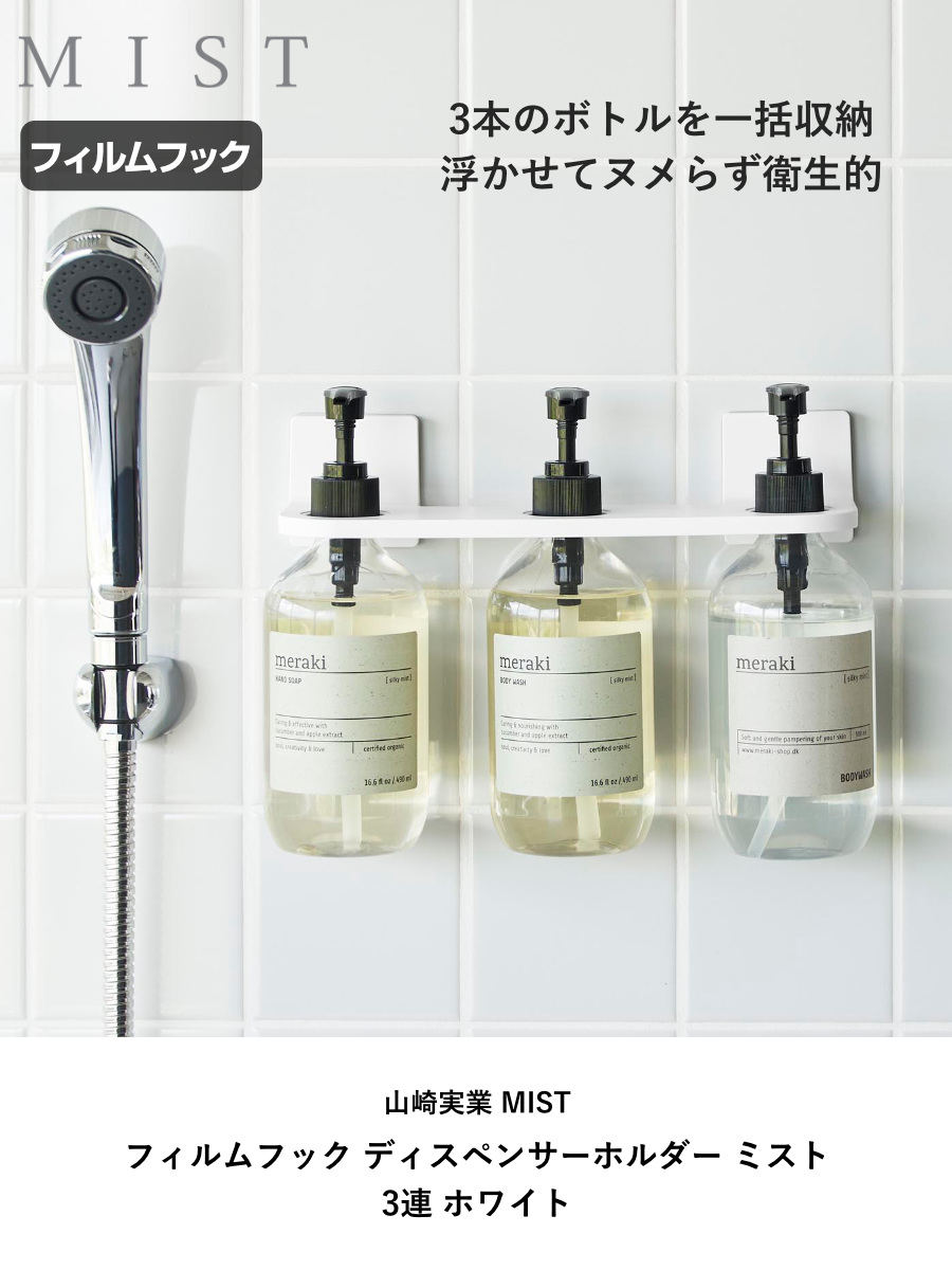 山崎実業 MIST フィルムフックディスペンサーホルダー ミスト 3連 ホワイト ( 4903208102834 ミストシリーズ ディスペンサーホルダー ボトルホルダー フィルムフックディスペンサー ホルダー 3連ホルダー ボトルハンガー )