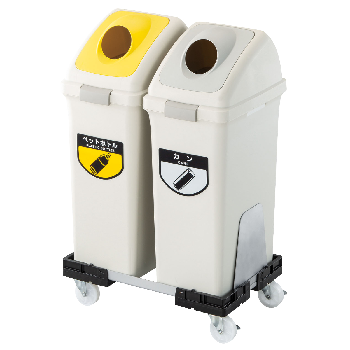 ゴミ箱ホルダー リサイクルトラッシュ ECO-35専用 アルミホルダー 2連 ( 法人限定 山崎産業 ECO-35 専用 キャスター台 ゴミ箱用 台車 移動 運搬 2分別 ダストボックス ごみ箱 トラッシュ 置台 ワゴン キャリー )