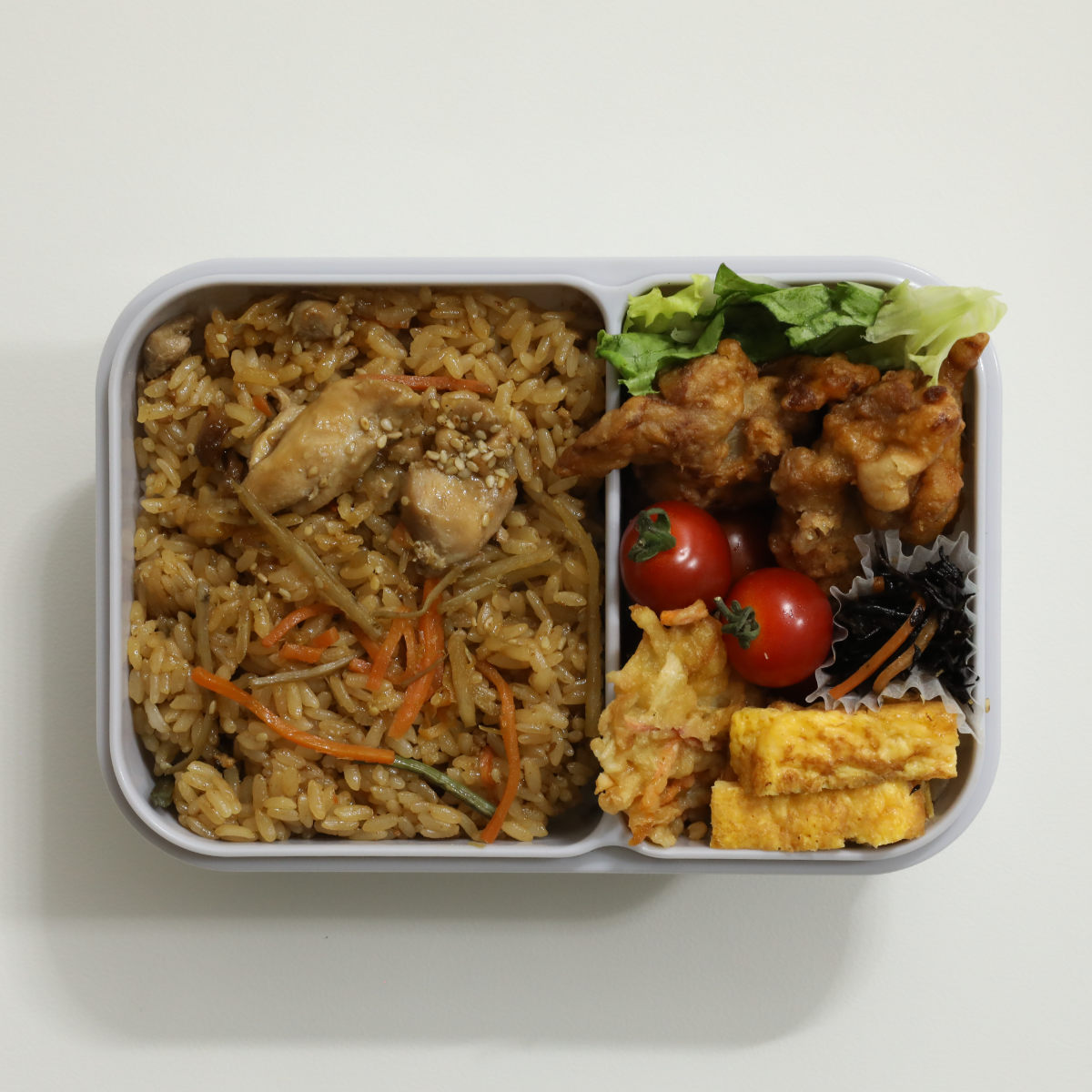 いつもよりしっかり食べたい日や、部活動をしている食べ盛りの学生さんにおすすめです。おかずとご飯を分けられるよう本体と一体型の中仕切りがあり、プレート感覚でランチを楽しめます。