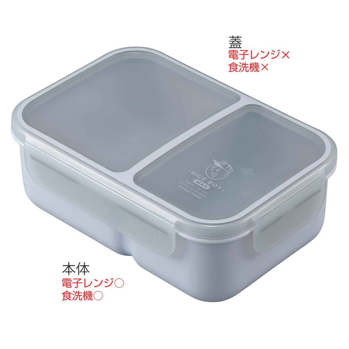 弁当箱 1300ml 汁漏れしにくい弁当箱 抗菌ライスボーイ MAX ( お弁当箱 抗菌 ライスボーイ 4点ロック レンジ対応 食洗機対応 ランチボックス 抗菌加工 食洗機OK レンジOK ロック式 仕切り付き 一段 仕切り弁当箱 シンプル お弁当 )