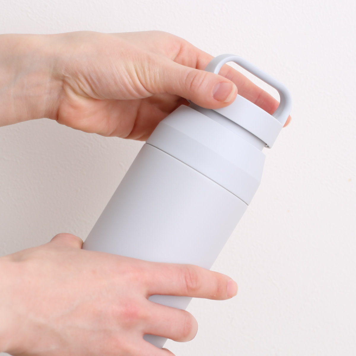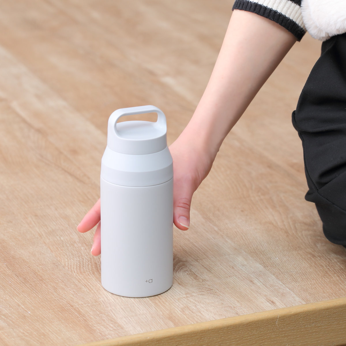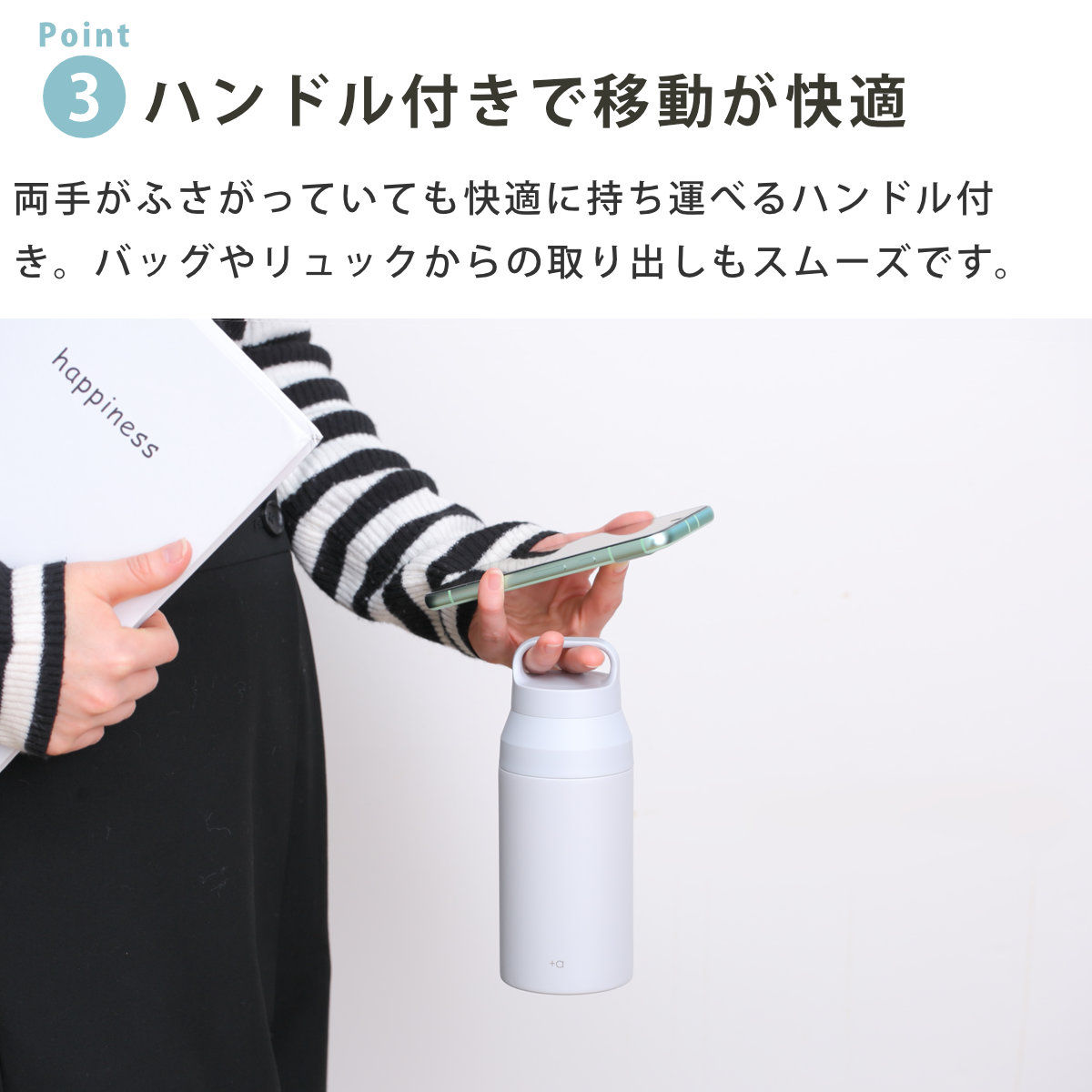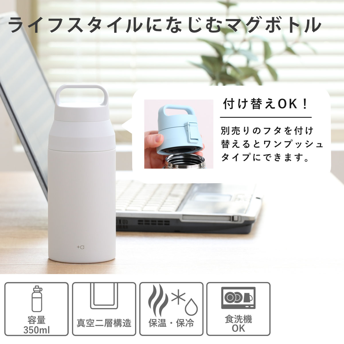 水筒 350ml プラスエー ハンドル付きステンレスボトル ( 直飲み 保温 保冷 食洗機対応 マグボトル ハンドル付 食洗機OK 直のみ 真空二重構造 ステンレスボトル スリム マグ ボトル シンプル ) 【パウダーブルー】