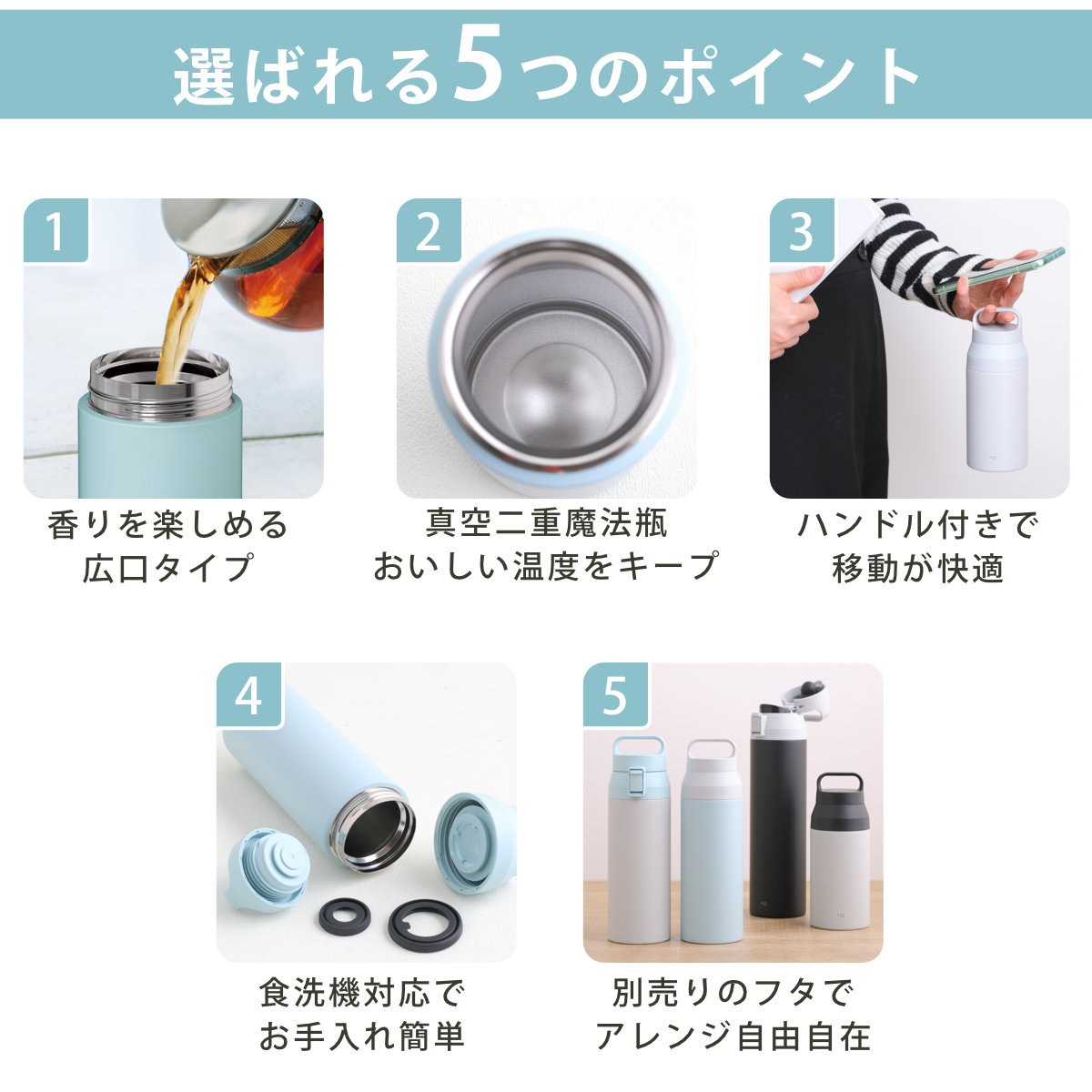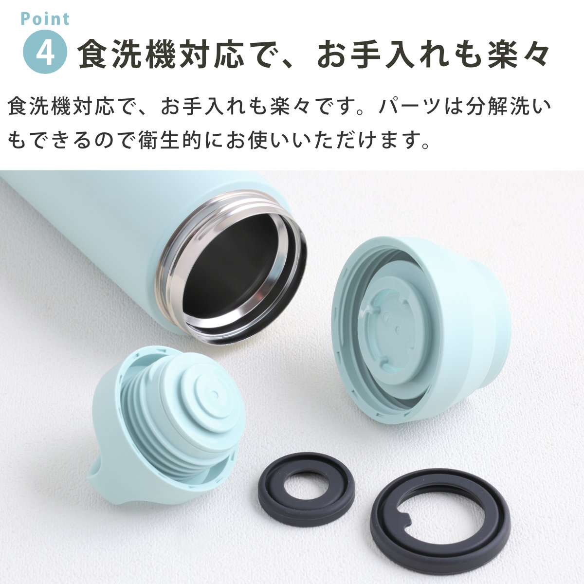 | パーツ別耐熱温度 | フタ・飲み口:110度 フタパッキン・飲み口パッキン:180度 |