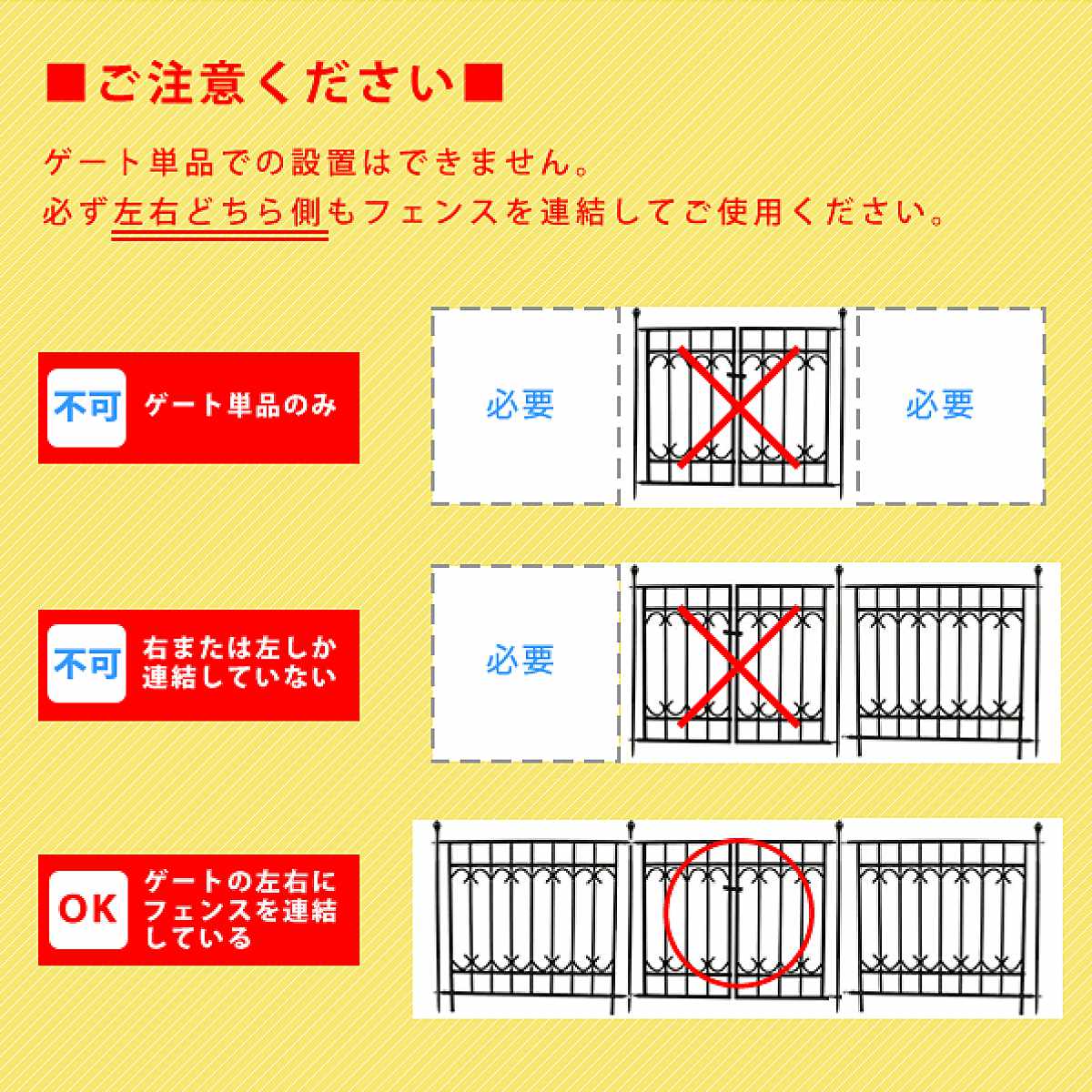 ※設置には必ず左右両サイドに【フェンス連結セット】が必要です