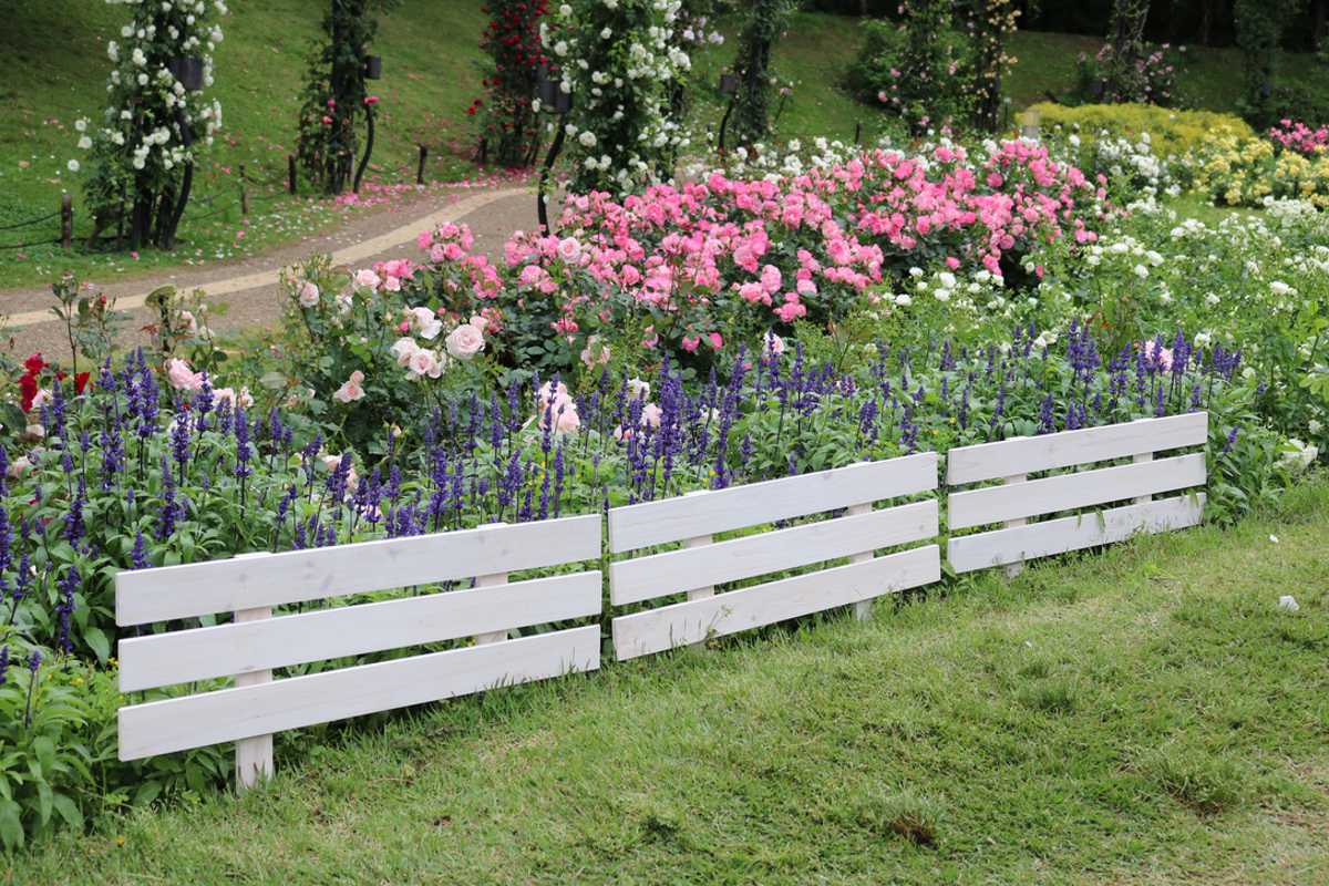 真っ白ではなく木目がうっすら透けて見えるウォッシュホワイトは、設置するだけでお庭がパッと明るい印象になります。