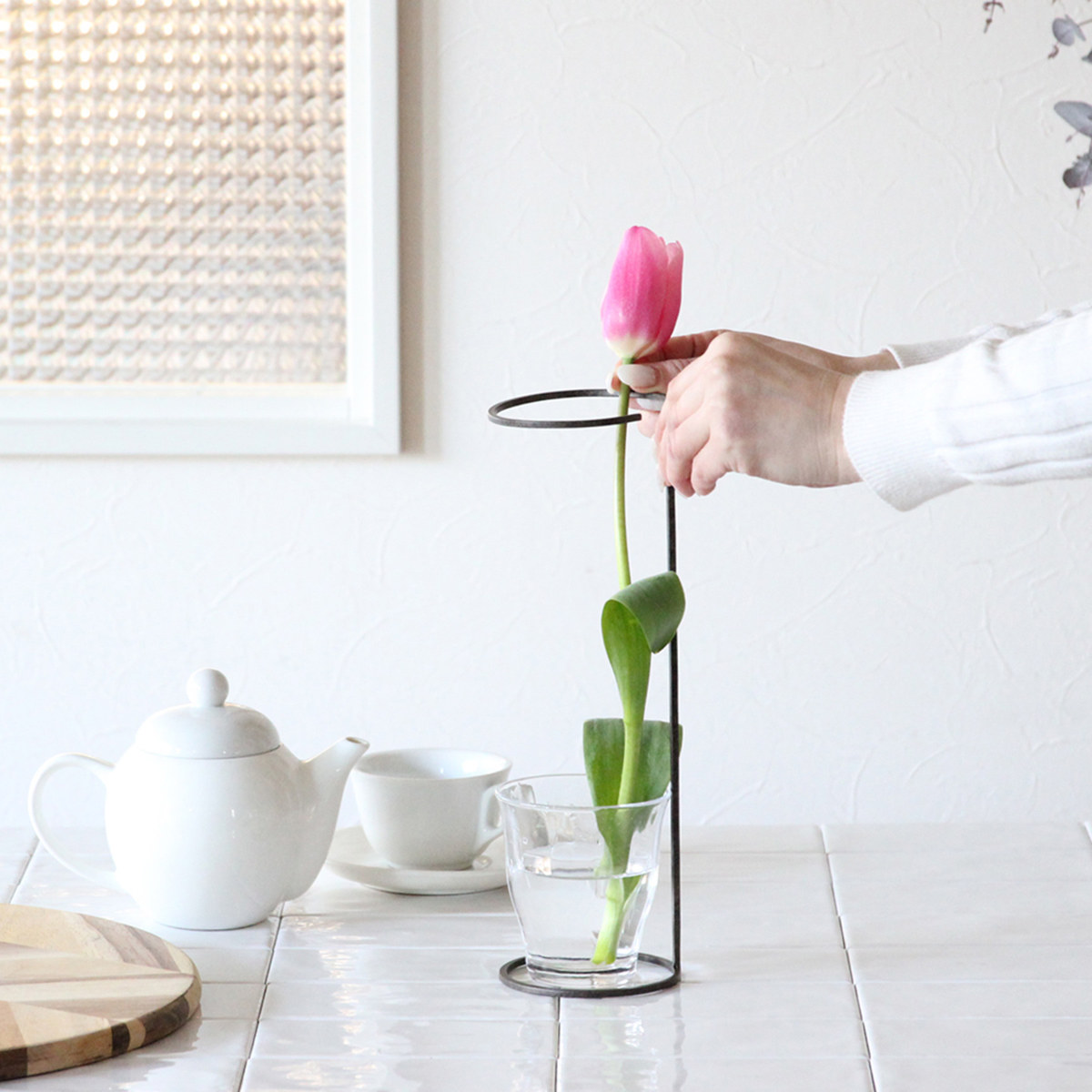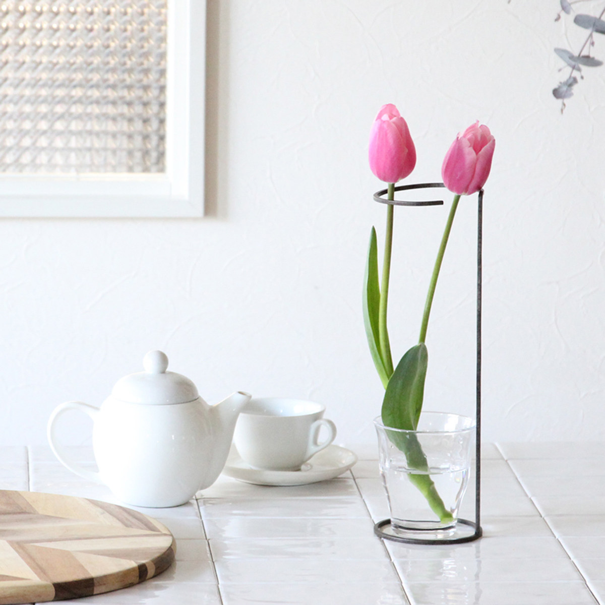 1本のアイアンで作られたシンプルデザインで、どんなフラワーベースとも合わせやすいです。