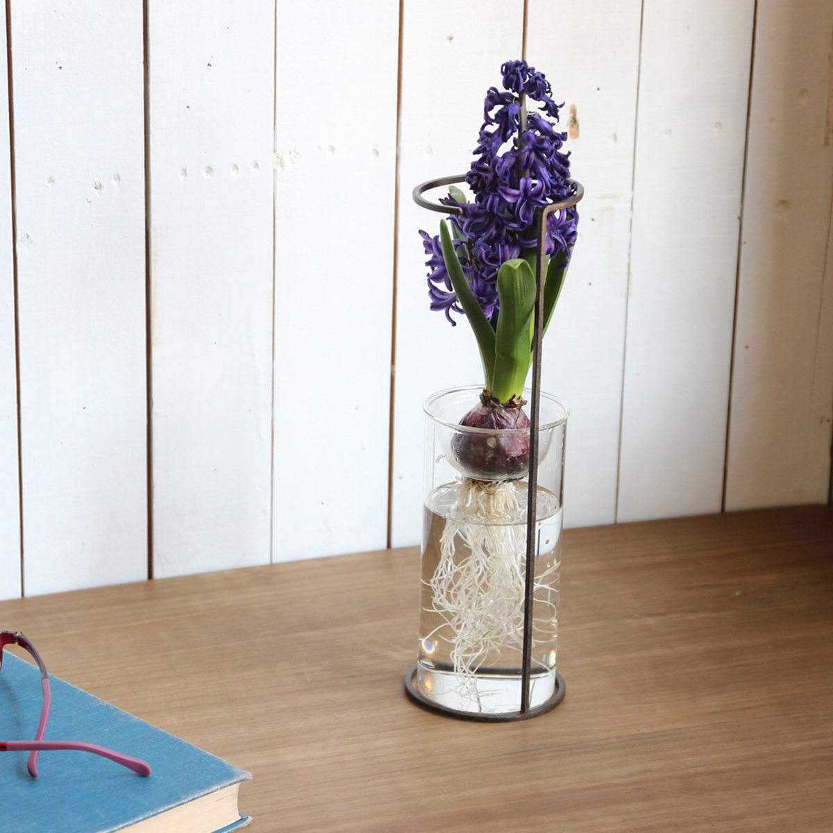 大きく長く育つ球根の水耕栽培などをサポートするフラワースタンドです。花が重くなり傾いてしまったときでも、これを使えば支えになり安心です。