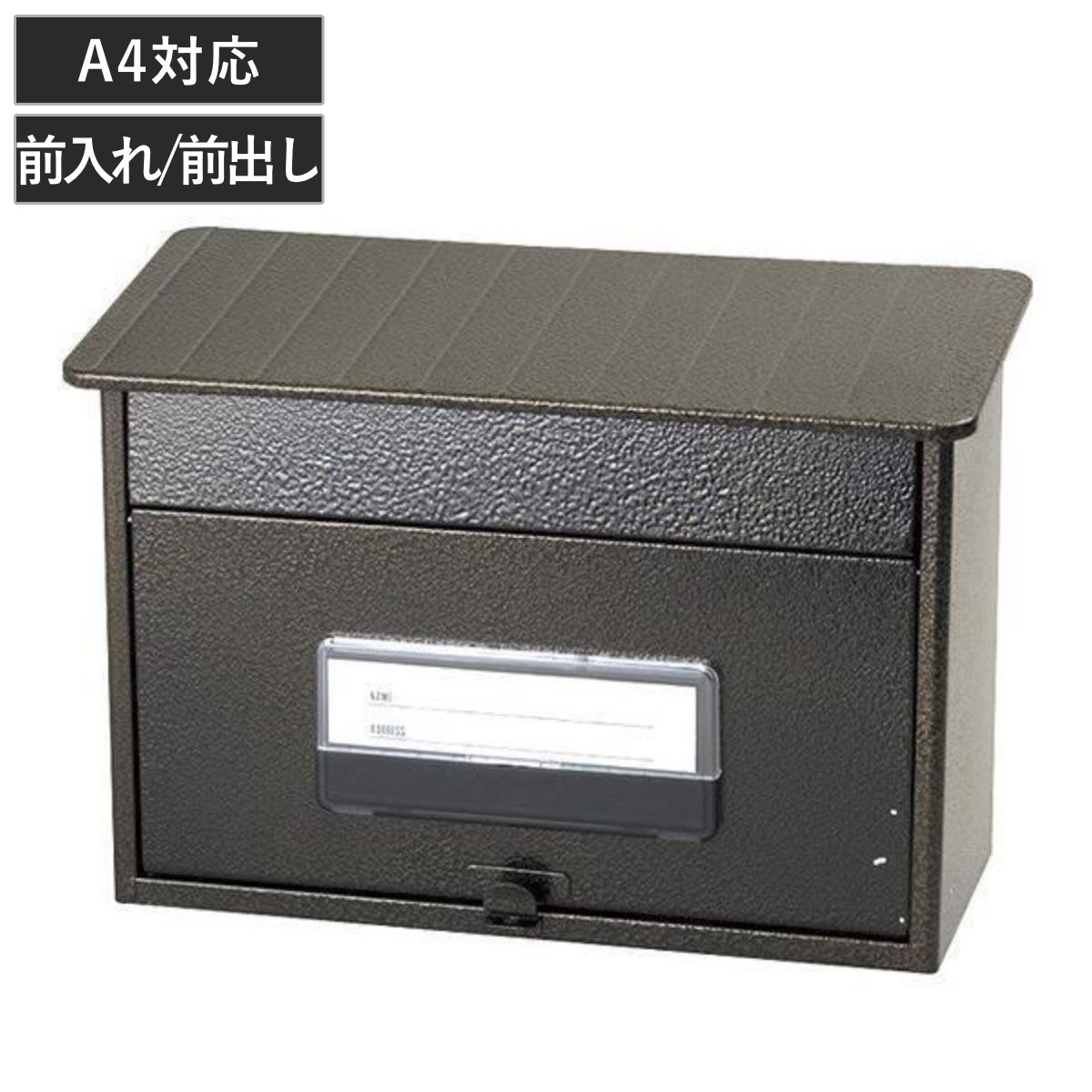 A4サイズや四折新聞などが投函可能です。メール便もらくらく投函できる広い投函口で、取出口も大きく開くので中が確認しやすく取り出しやすいです。表側に投函口と取出口がある前入れ前出し仕様になっているので、壁面にも設置ができます。
