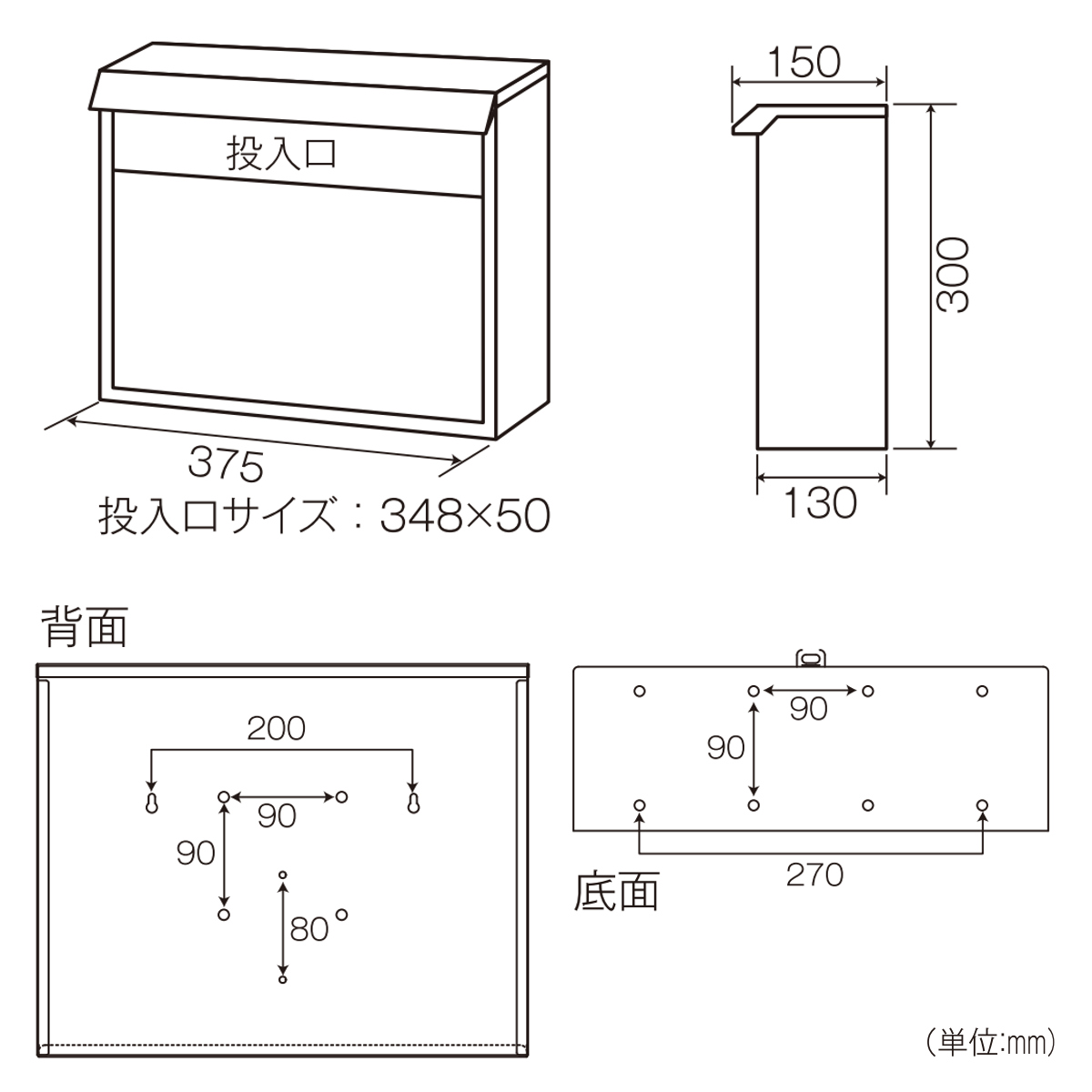 表側に投函口と取出口がある仕様になっているので、壁面にも設置ができます。