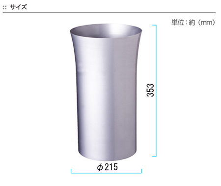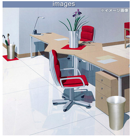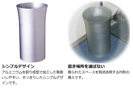 | シンプルデザイン アルミニウムを絞り成型で加工した取扱いしやすい、すっきりしたシンプルデザインです。 | 置き場所を選ばない 限られたスペースを有効活用する円形の屑入です。 |