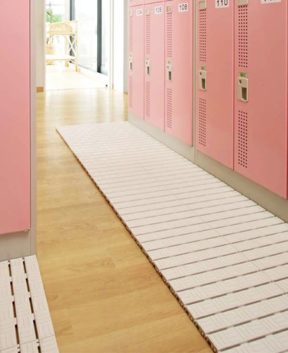 関連キーワード:プラスチックすのこ 屋内すのこ 屋内スノコ 業務用スノコ 学校 プール 更衣室 下駄箱 ロッカー 玄関 樹脂製スノコ 靴箱 幼稚園 保育園 小学校 中学校 高校 ジム スイミングスクール ロッカールーム 渡り廊下 通路 テラス シャワー お風呂 浴場 バス 温泉 銭湯 みざら ミザラ ノンスリップ マットレス 再生樹脂 ECO エコ 環境 持ち運び