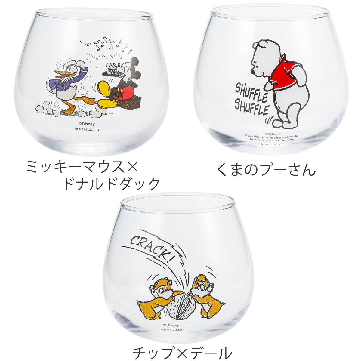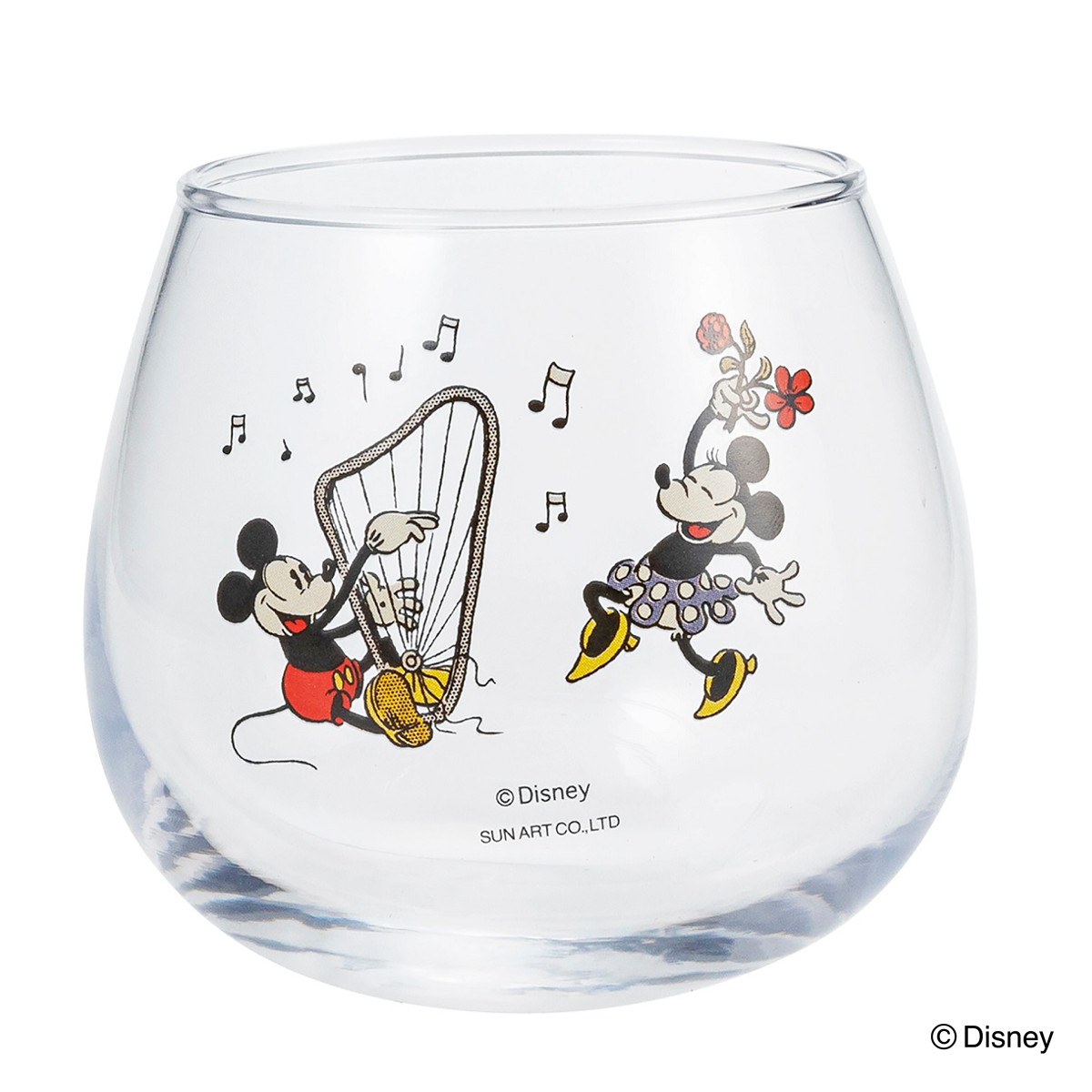 ●底が丸いため、キャラクターがグラスの中でゆらゆらと揺れているように見えるユニークなデザインです。