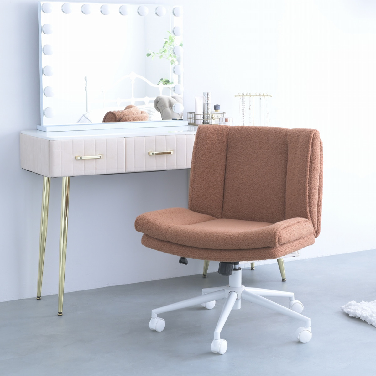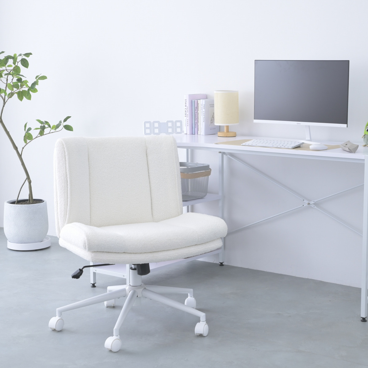 オフィスチェア あぐら 座面幅61cm OURLY あぐらチェア ( ワークチェア パソコンチェア 座面 広い ロッキング機能 高さ調節 回転 肘なし ゲーミングチェア フリース生地 レザー調 ドレッサー チェア アームレスト キャスター付き ) 【ベージュ】