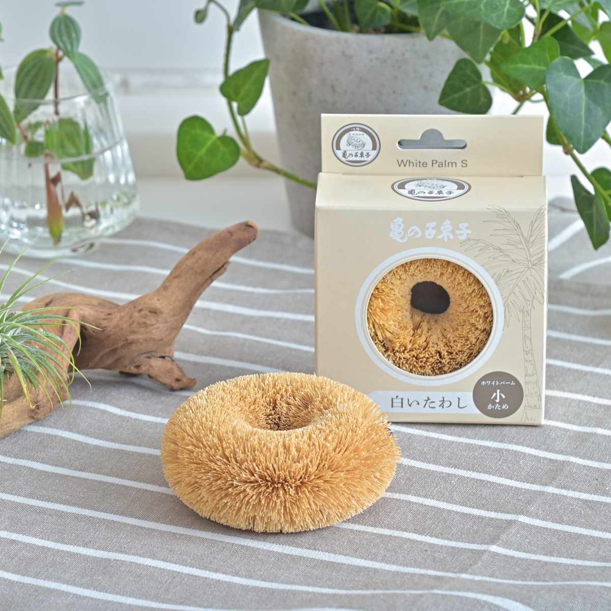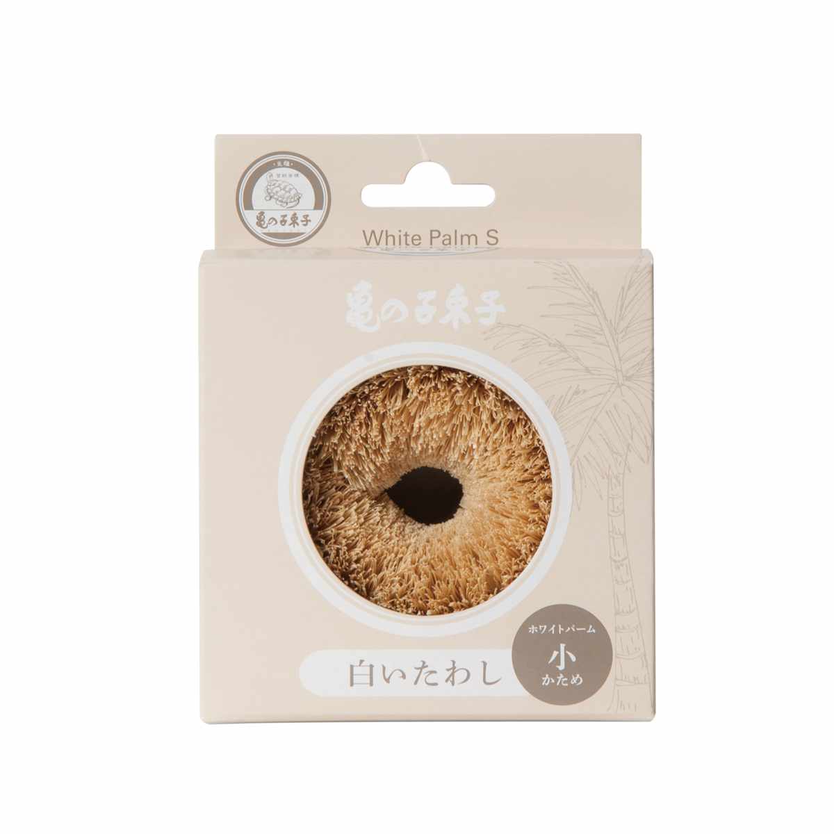 キッチンタワシ 亀の子束子 白いたわし ホワイトパーム 小 ( タワシ 束子 亀の子タワシ ざる洗い まな板洗い コゲ落とし 天然素材 日本製 フライパン 鍋 調理器具を洗う 食器洗い 皿洗い 野菜洗い 洗う 泥落とし ドーナツ型 )