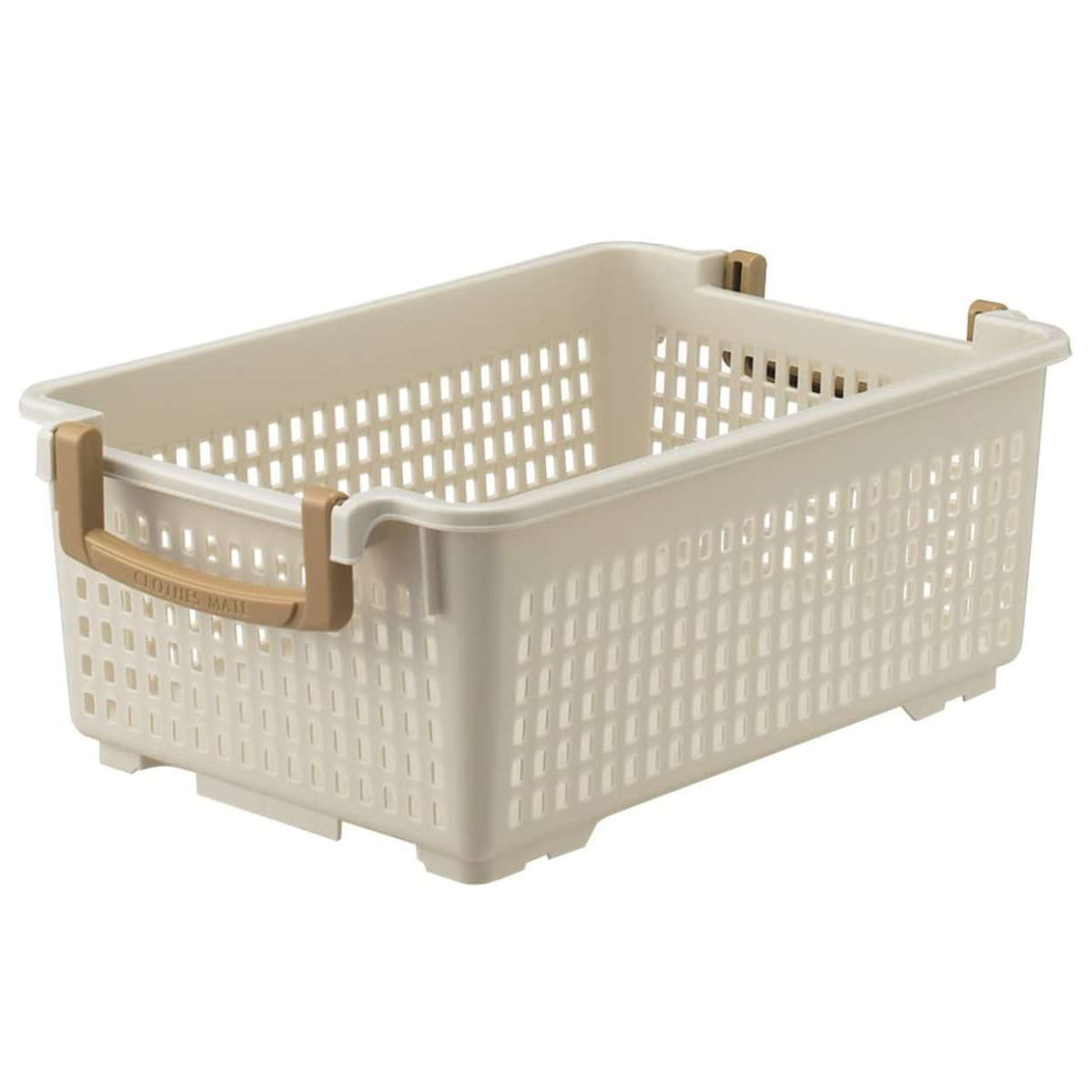収納バスケット 衣類収納ケース フリーバスケット Sサイズ 取っ手付き ベージュ ( 幅25×奥行38.5×高さ14cm かご カゴ 収納 衣装ケース プラスチック 積み重ね 小物入れ 収納箱 Yシャツ 収納ボックス 収納ケース バスケット ) 【ベージュ】