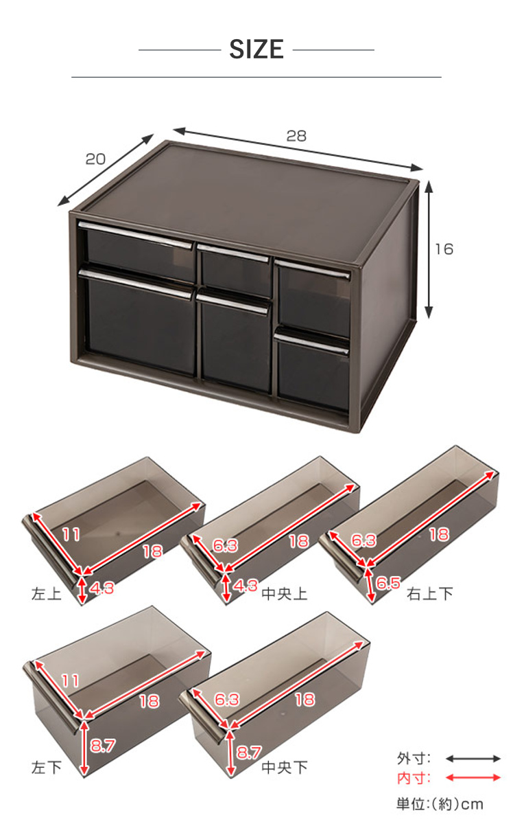 | 材質 | 本体:ハイインパクトスチロール 引出し:スチロール樹脂 |