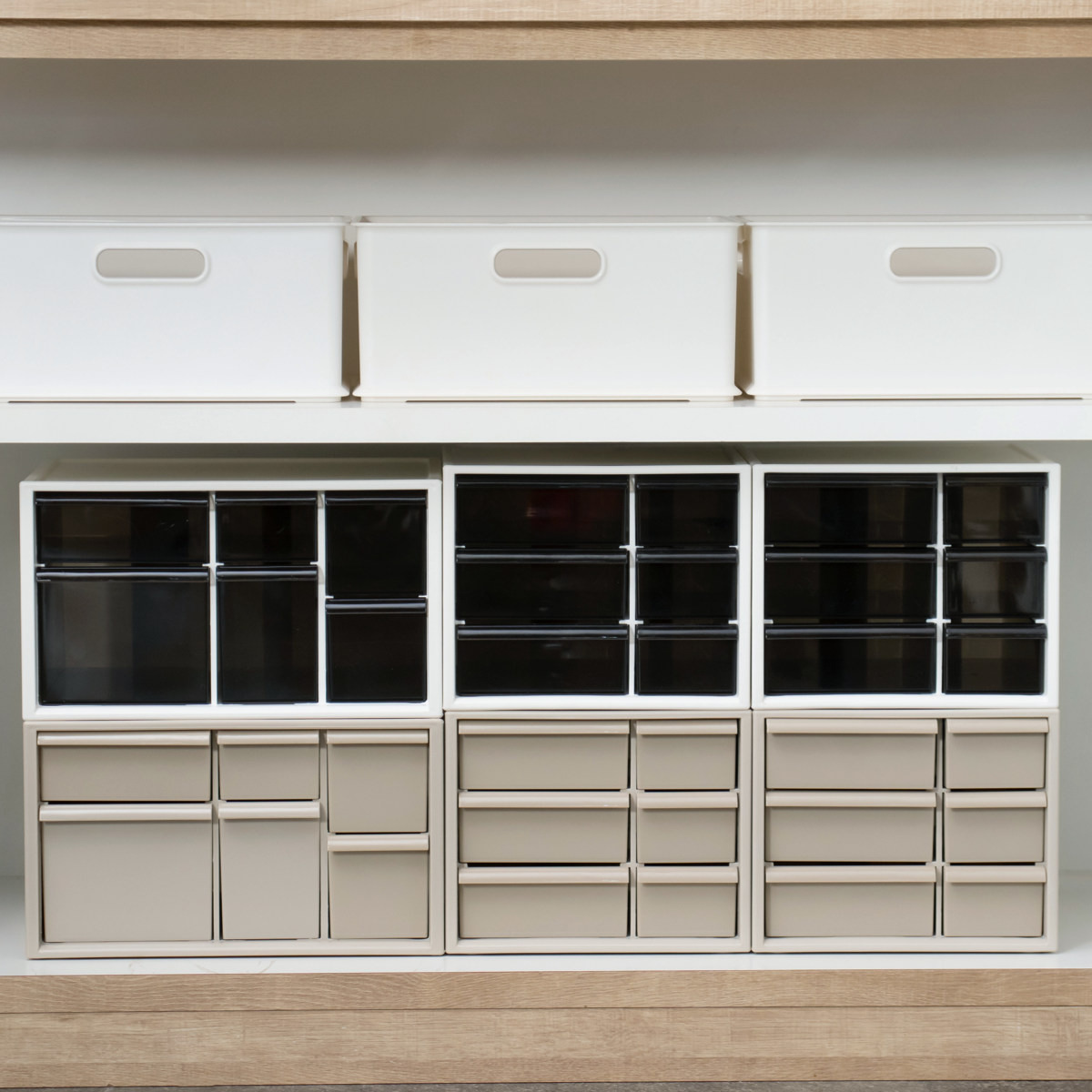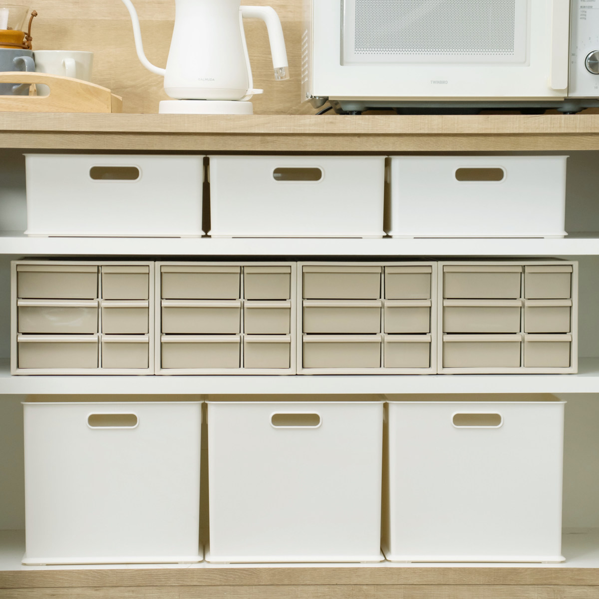 当店限定カラーの『グレージュ』は、引き出しも不透明のオールカラー仕様で中身が見えません。収納するだけで生活感を隠すことができるので、お部屋をよりスッキリとスタイリッシュな印象にしてくれます。