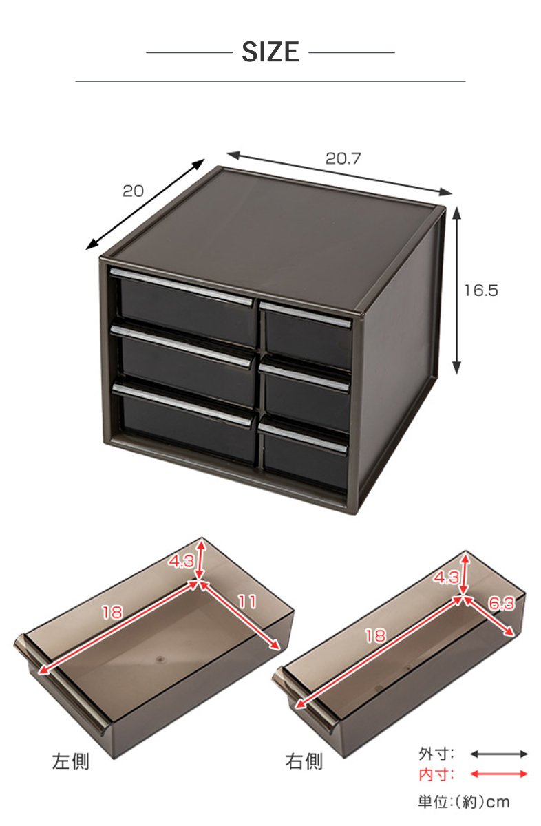 | 材質 | 本体:ハイインパクトスチロール 引出し:スチロール樹脂 |