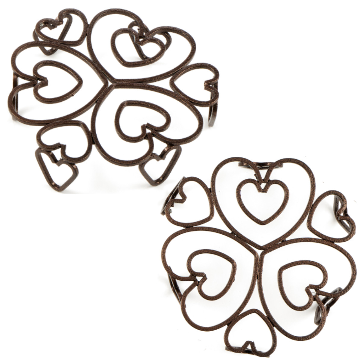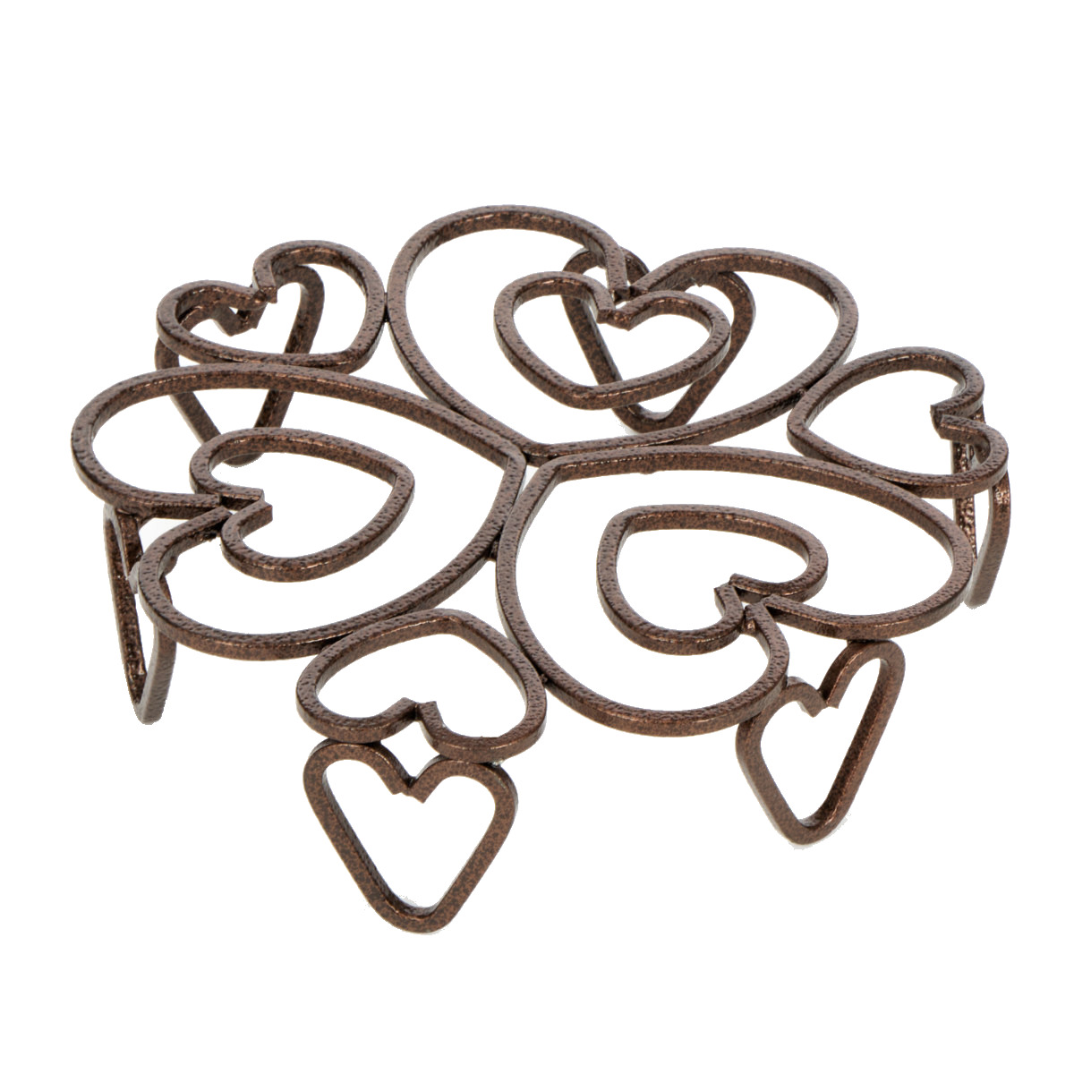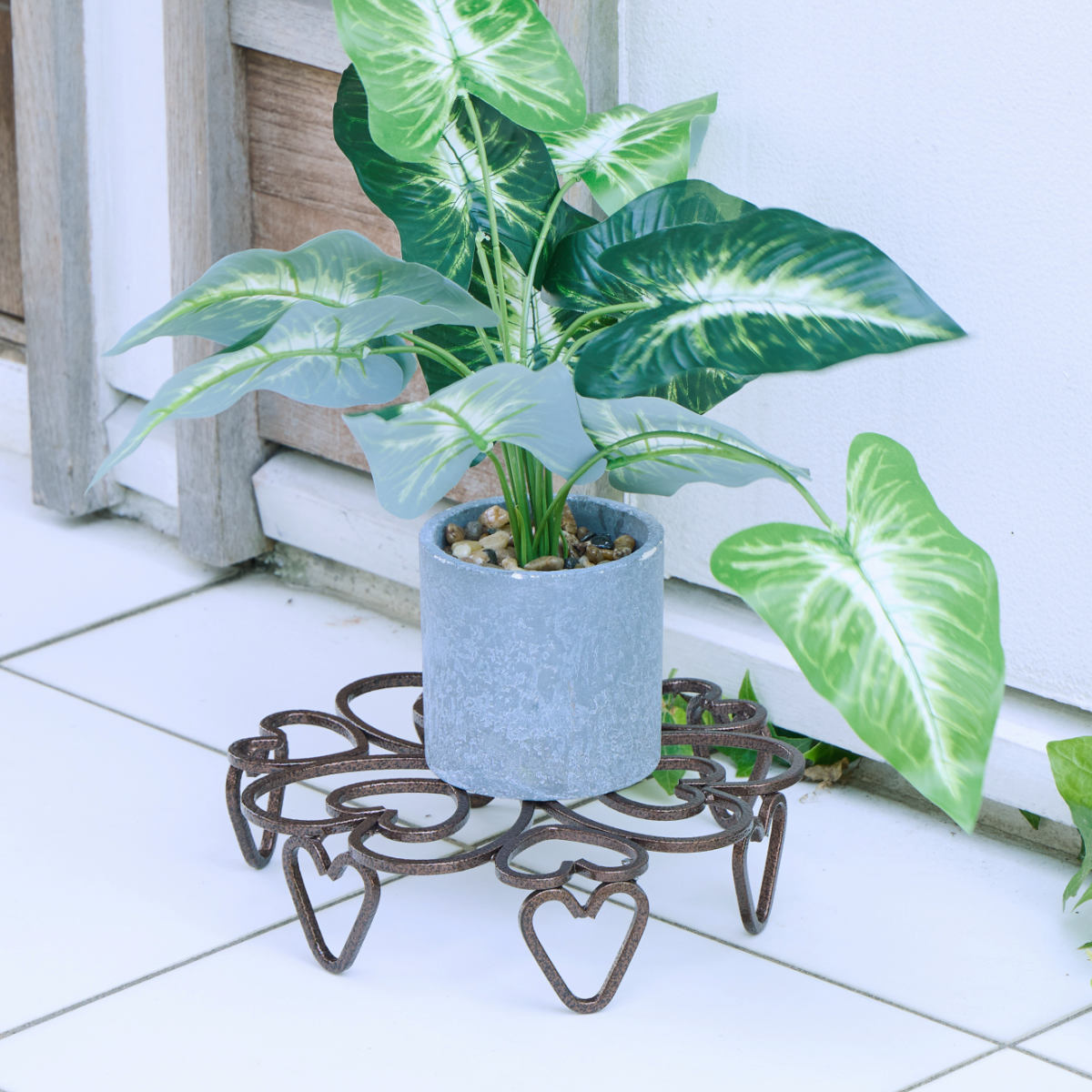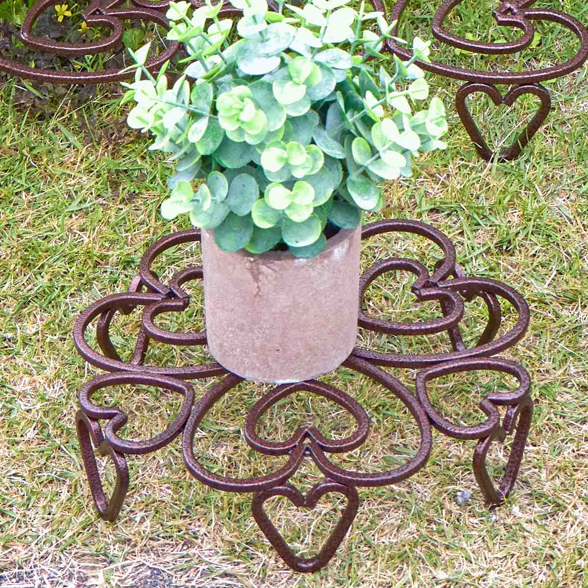 ハートをモチーフにしたアンティーク風のデザインがおしゃれ。丈夫なブロンズ製なので、重たい植木鉢もしっかり支えます。
