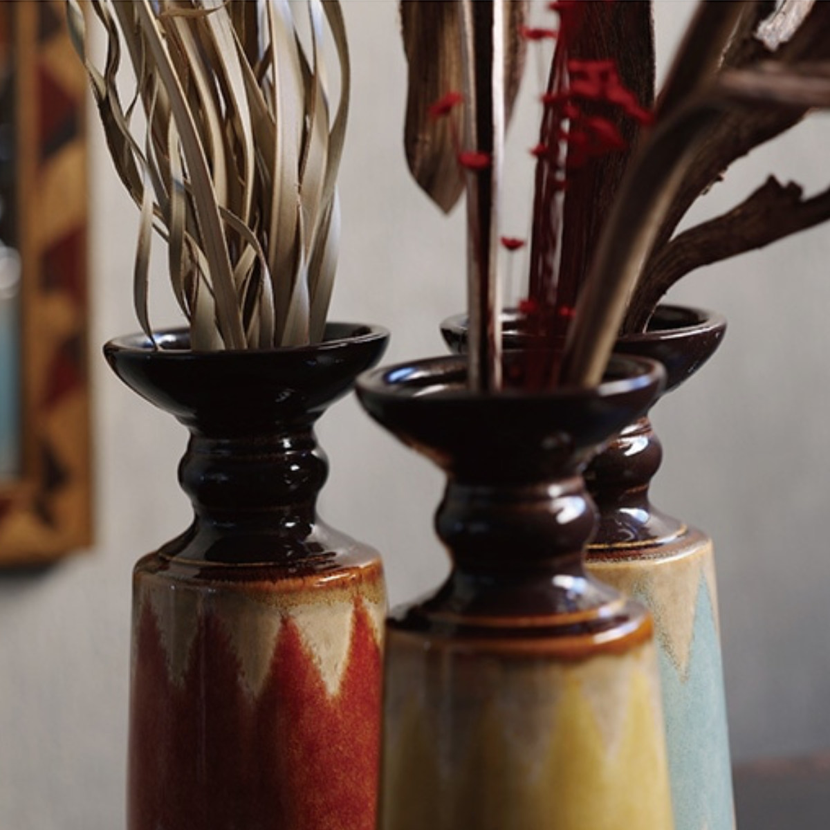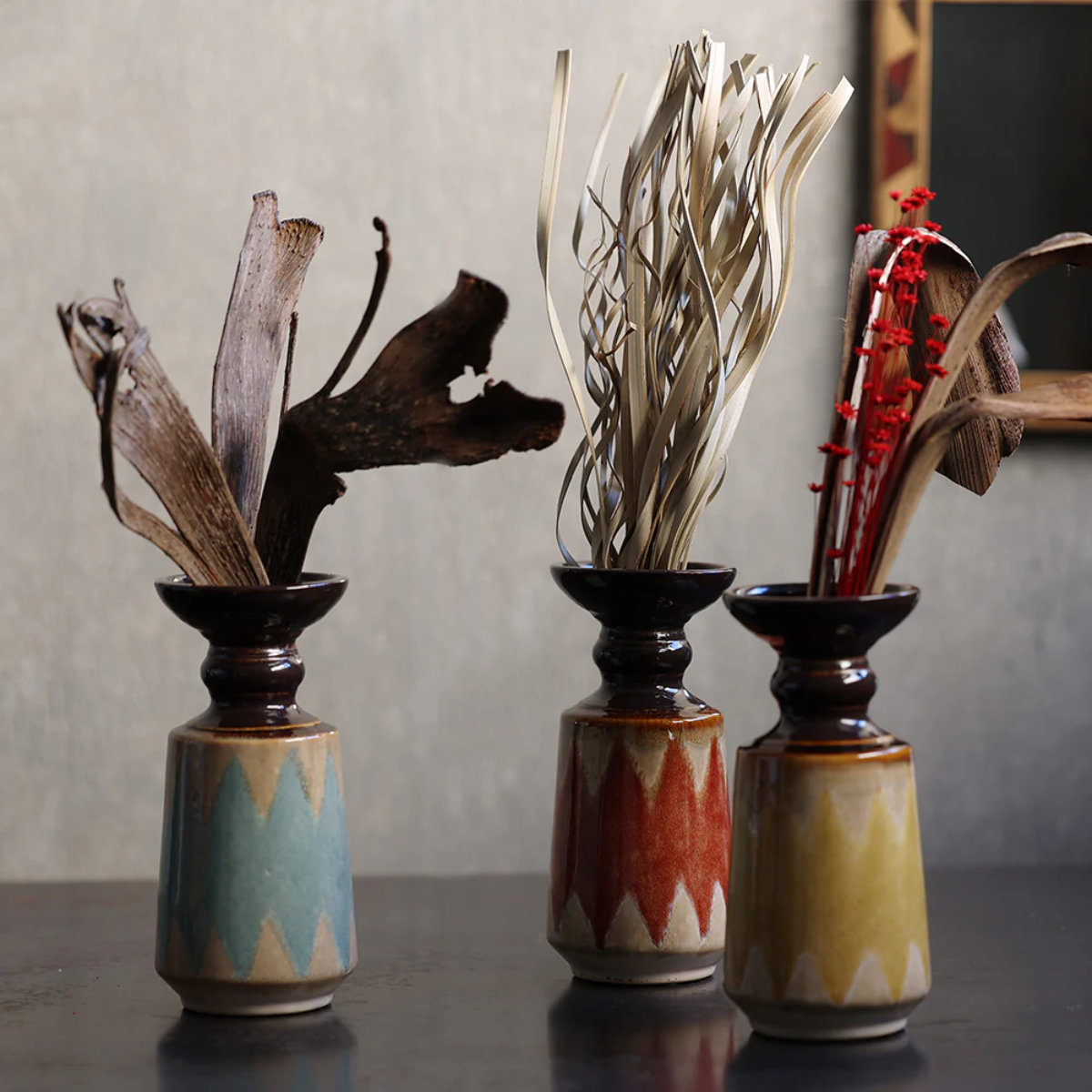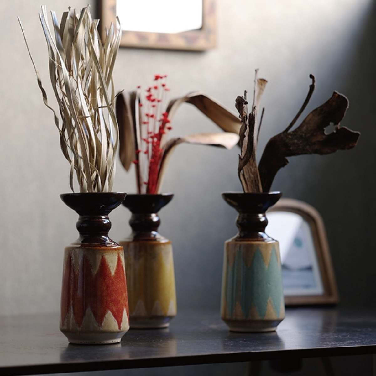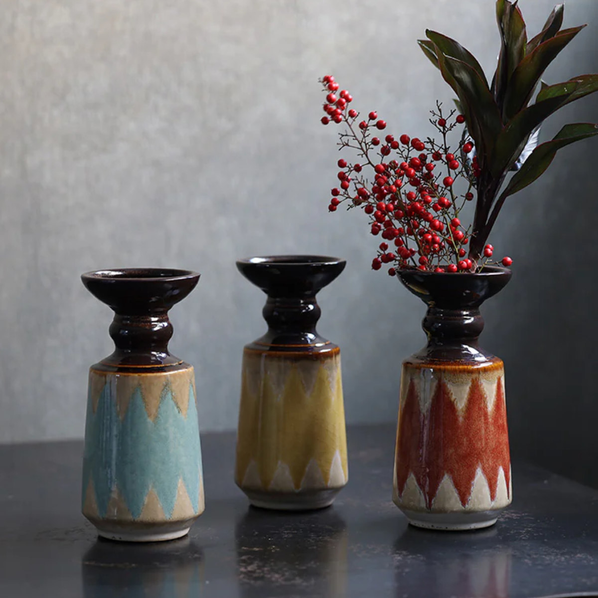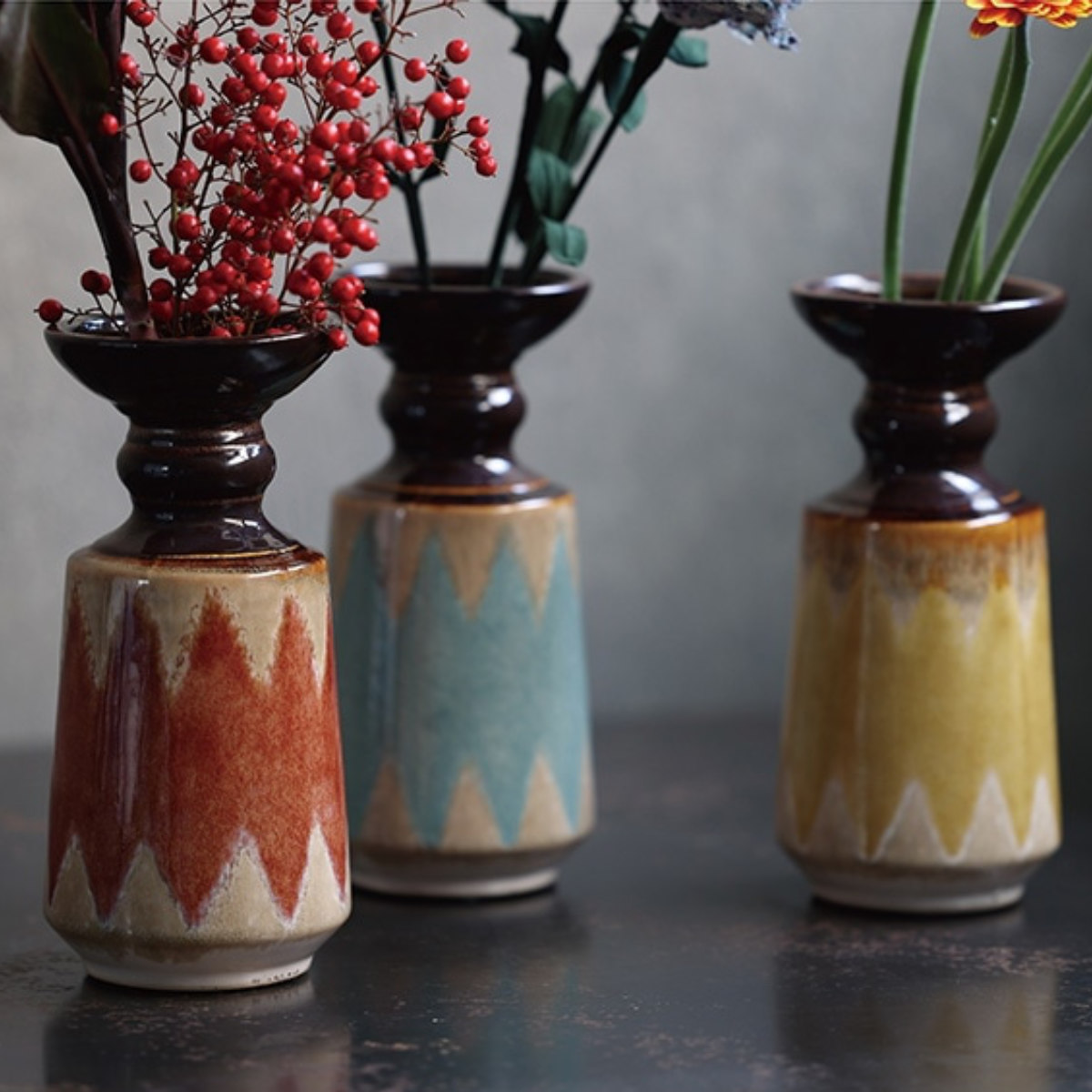 色違いの花器を組み合わせれば、お部屋に統一感とリズムのある空間が生まれます。