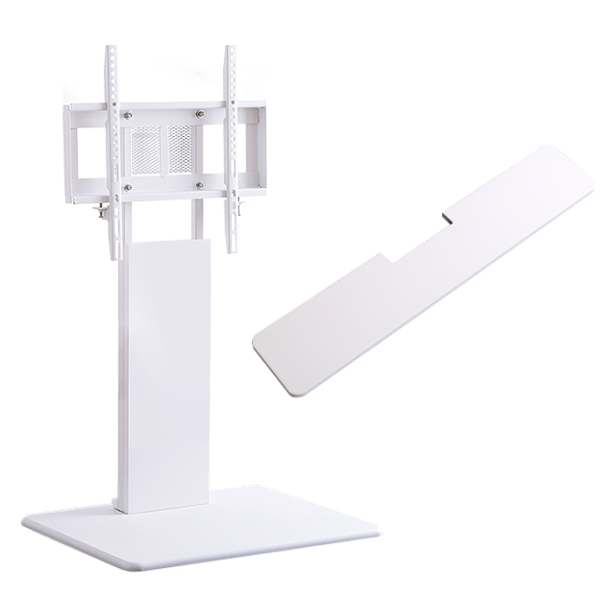 テレビスタンド 55インチ対応 ロータイプ 壁寄せ 耐震 首振り サウンドバー付き ( テレビ台 スタンド 伸縮 壁面 高さ調節 棚付 テレビボード TV台 ブラック ウォールナット ホワイト 木目調 ) 【ホワイト】