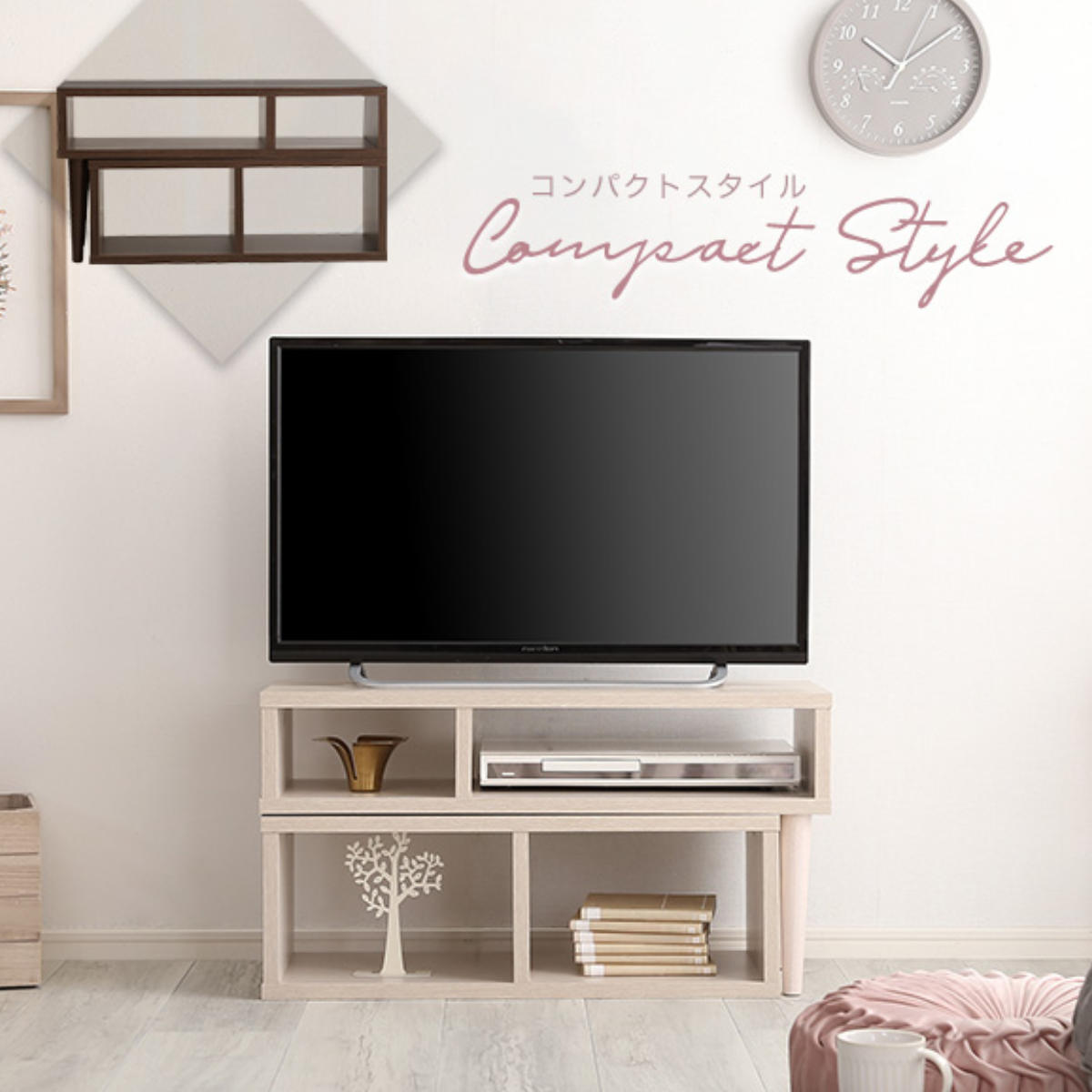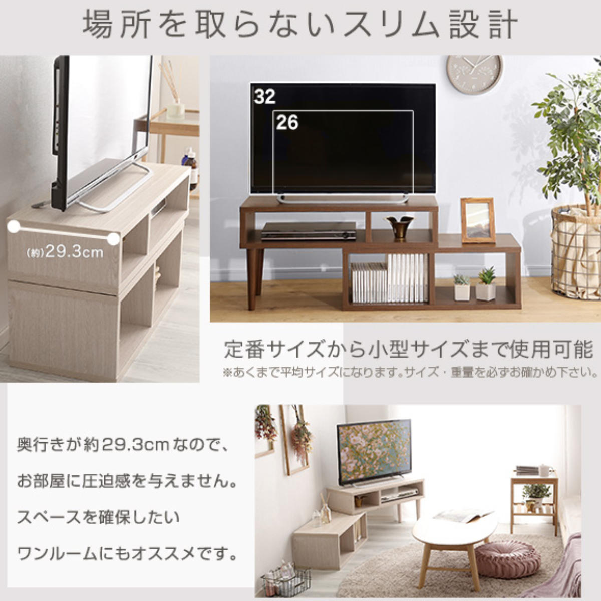 最大32インチのテレビが置けるサイズ。一人暮らしのコンパクトなお部屋にも、セカンドテレビとしても使いやすいサイズ感です。