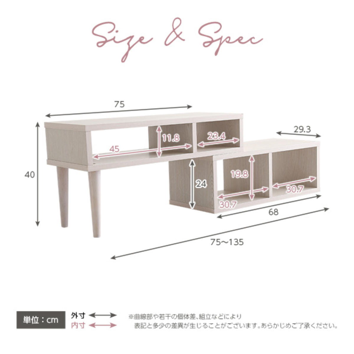 | サイズ | 約 幅75~135×奥行29.3×高さ40cm |