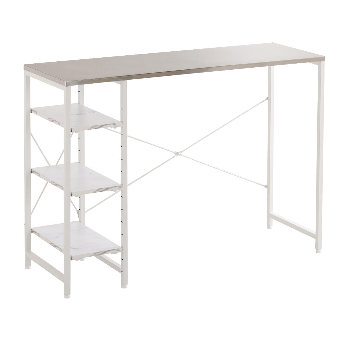 キッチンカウンター 幅118cm ステンレス天板 大理石調 可動棚 ゴミ上ラック ( カウンター キッチンラック ゴミ箱上 収納 作業台 家具 棚 ラック 3段 省スペース キッチン収納 お手入れ簡単 )
