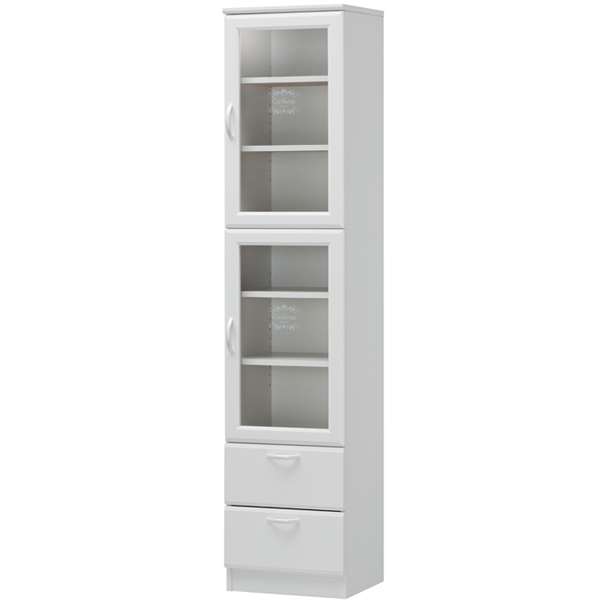食器棚 カップボード スリム カフェ風デザイン セシルナ 幅40cm ( すき間収納 隙間収納 スリムラック ラック キッチン収納 キッチン 収納 隙間 すき間 コンパクト シンプル 白 ホワイト 棚 収納棚 ガラス扉 )