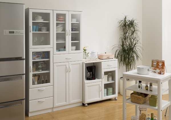 ●明るく清潔感のあるキッチン収納インテリアは、女性が使いやすい機能やサイズにこだわり、選択肢が広がるシリーズです。
