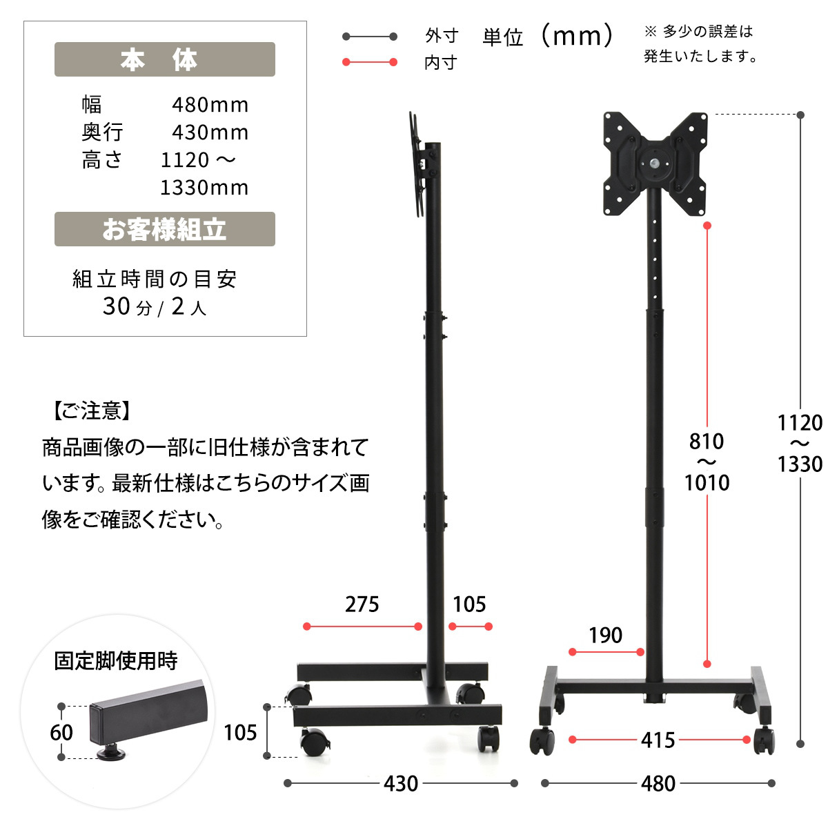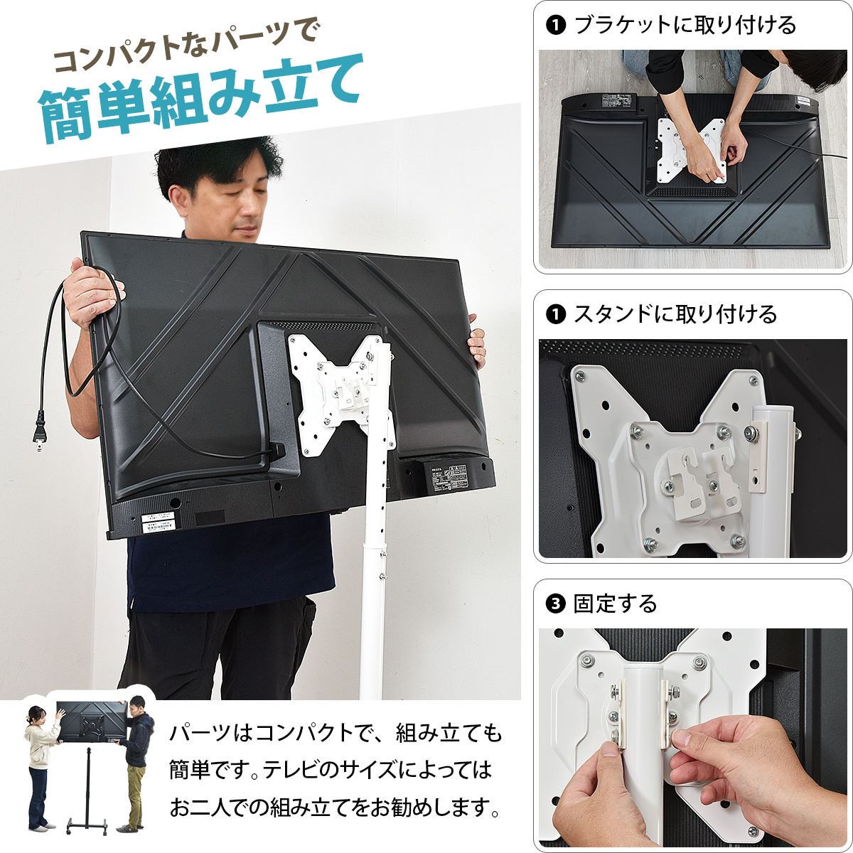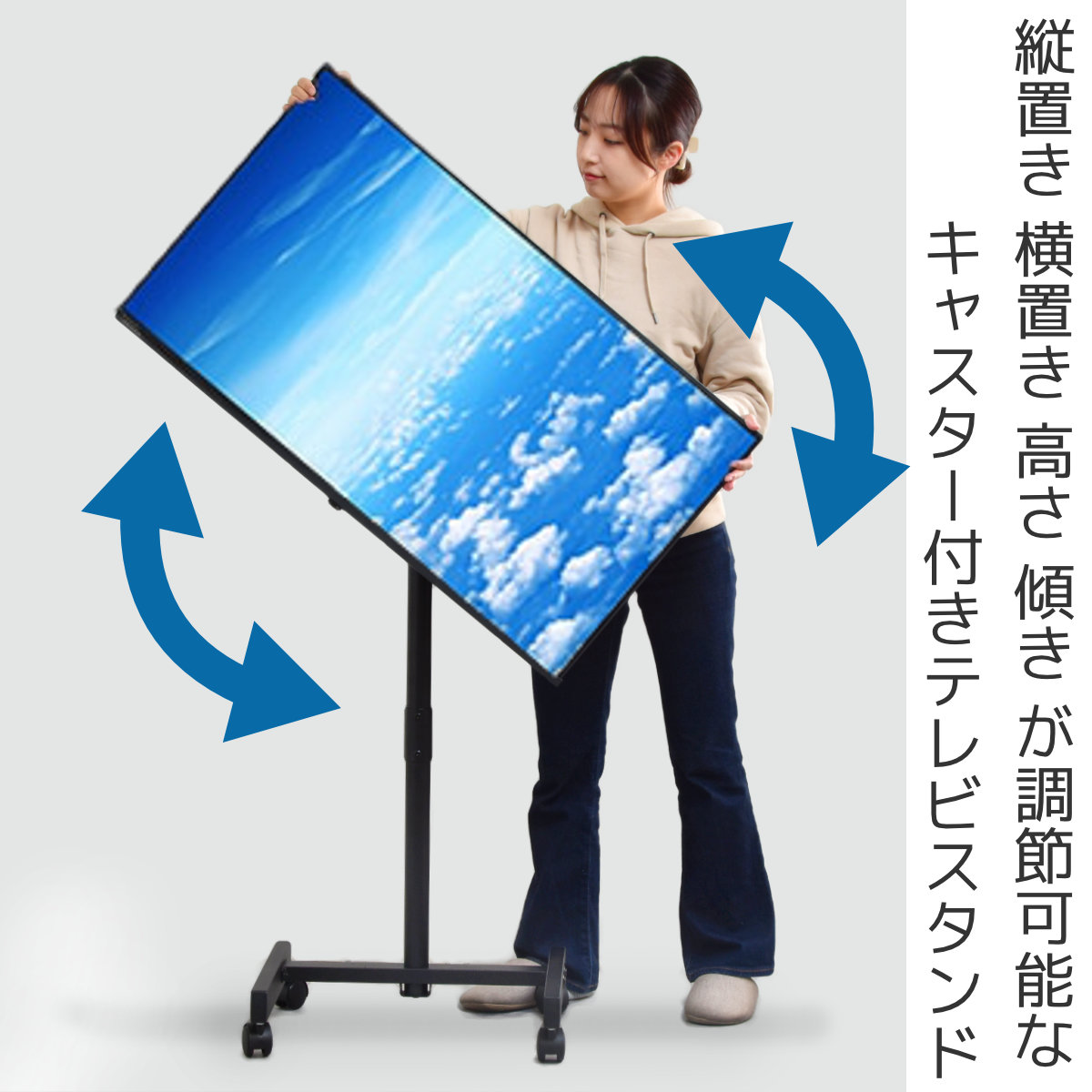 縦・横回転が可能なモニターに対応している、キャスター付きテレビスタンドです。家庭用のテレビ用にはもちろん、店舗用のデジタル看板やゲームやライブ配信など、マルチに使えます。