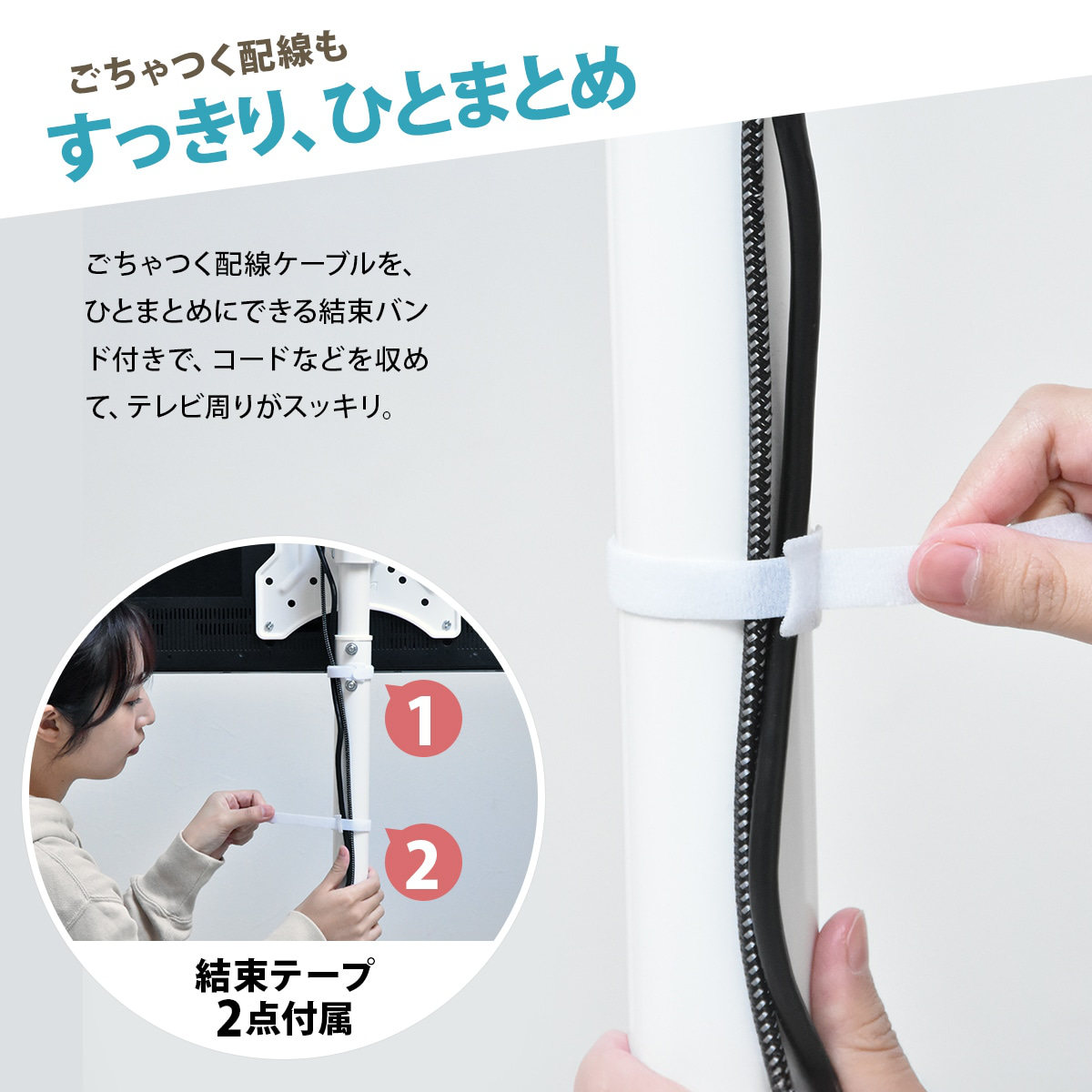 配線をひとまとめにできる結束バンドが2点付属しています。ケーブルをポールに沿わせてまとめることで、テレビ周りをすっきりと整理できます。