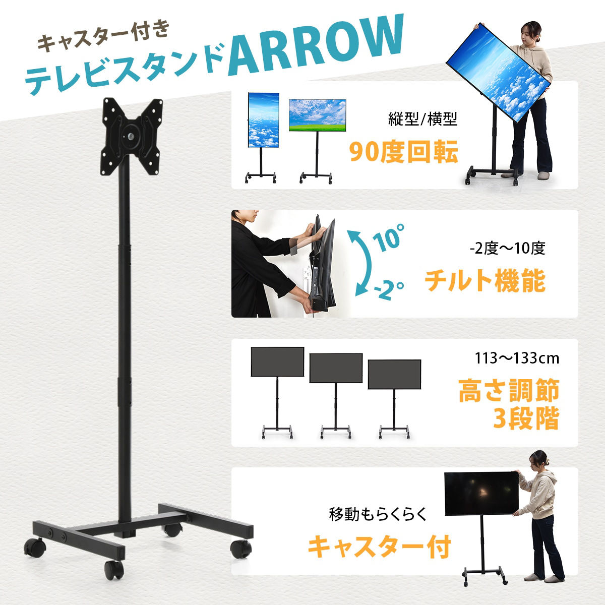 テレビスタンド Alloy 42インチ対応 高さ112~133cm 90度回転 キャスター付き ( テレビ台 スタンド 伸縮 高さ調節 縦向き 横向き 角度調節 回転式 チルト機能 看板 モニター 配信 ブラック ホワイト ) 【ブラック】