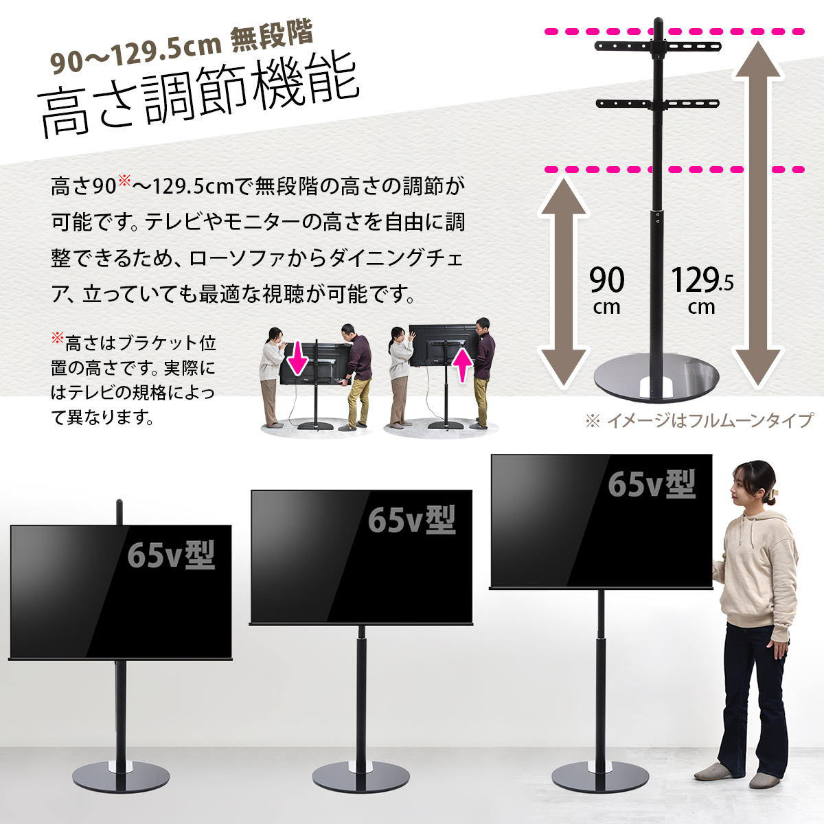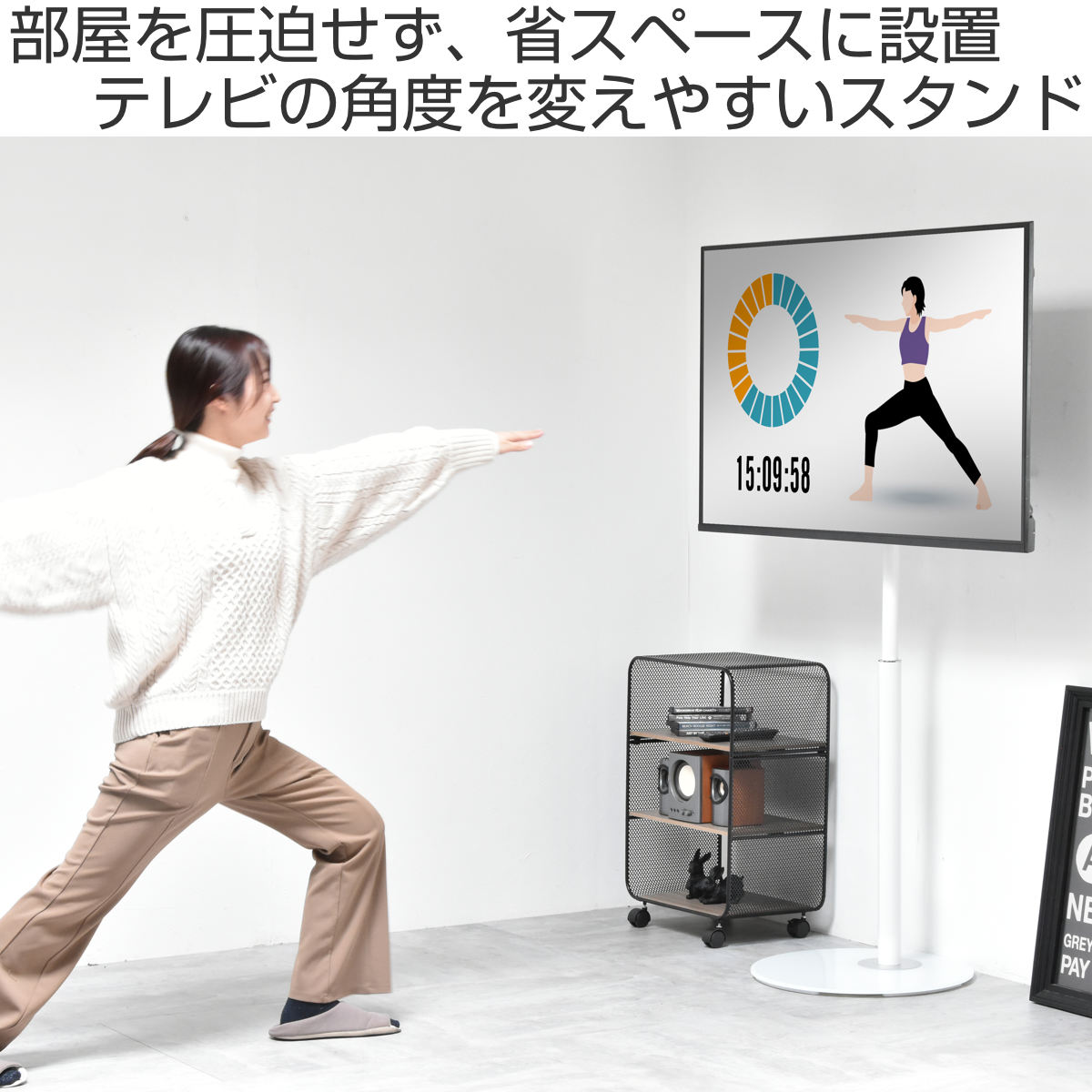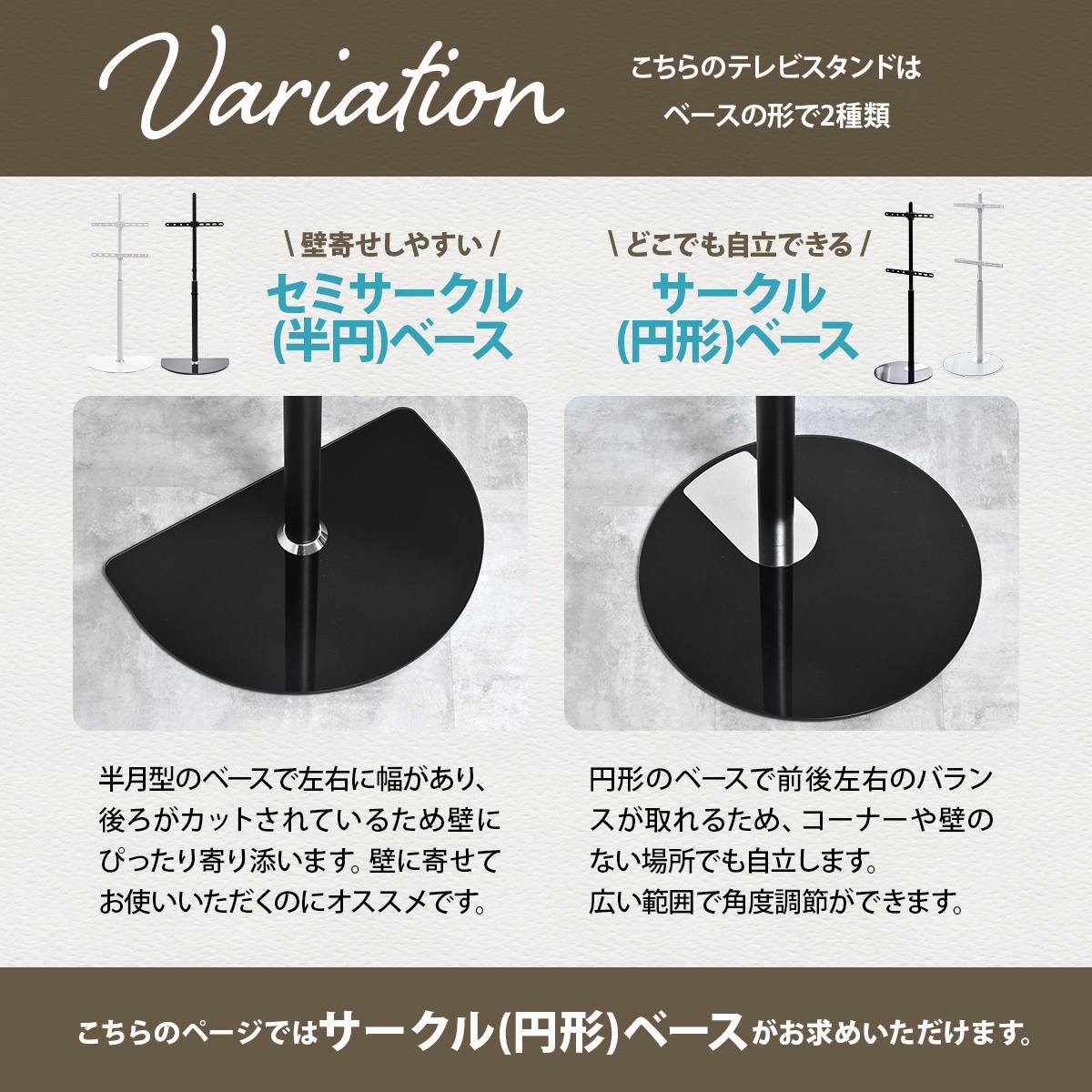 テレビスタンド Circle 65インチ対応 高さ90~129.5cm 壁寄せ 首振り ( テレビ台 スタンド 伸縮 高さ調節 無段階調節 角度調節 省スペース 円形 奥行スリム ブラック ホワイト ) 【ホワイト】