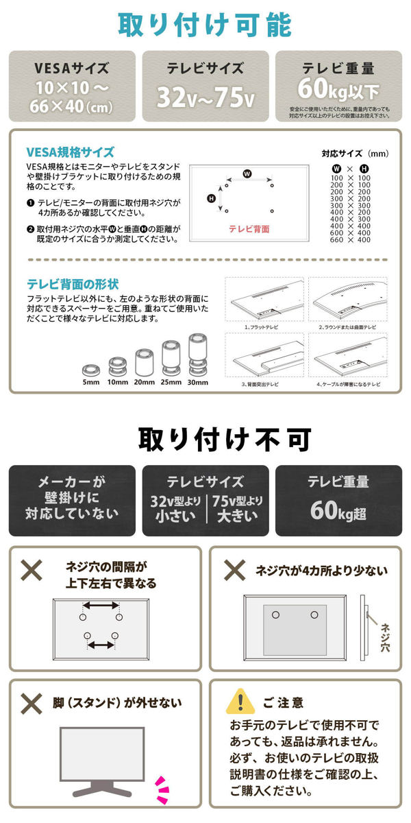 | 適応テレビサイズ | 32v型~75v型 |