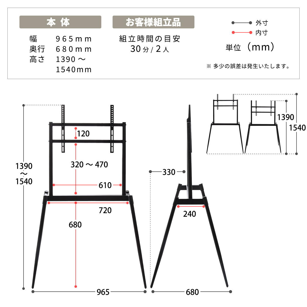 | 備考 | 組立時間目安:2人、目安30分 |