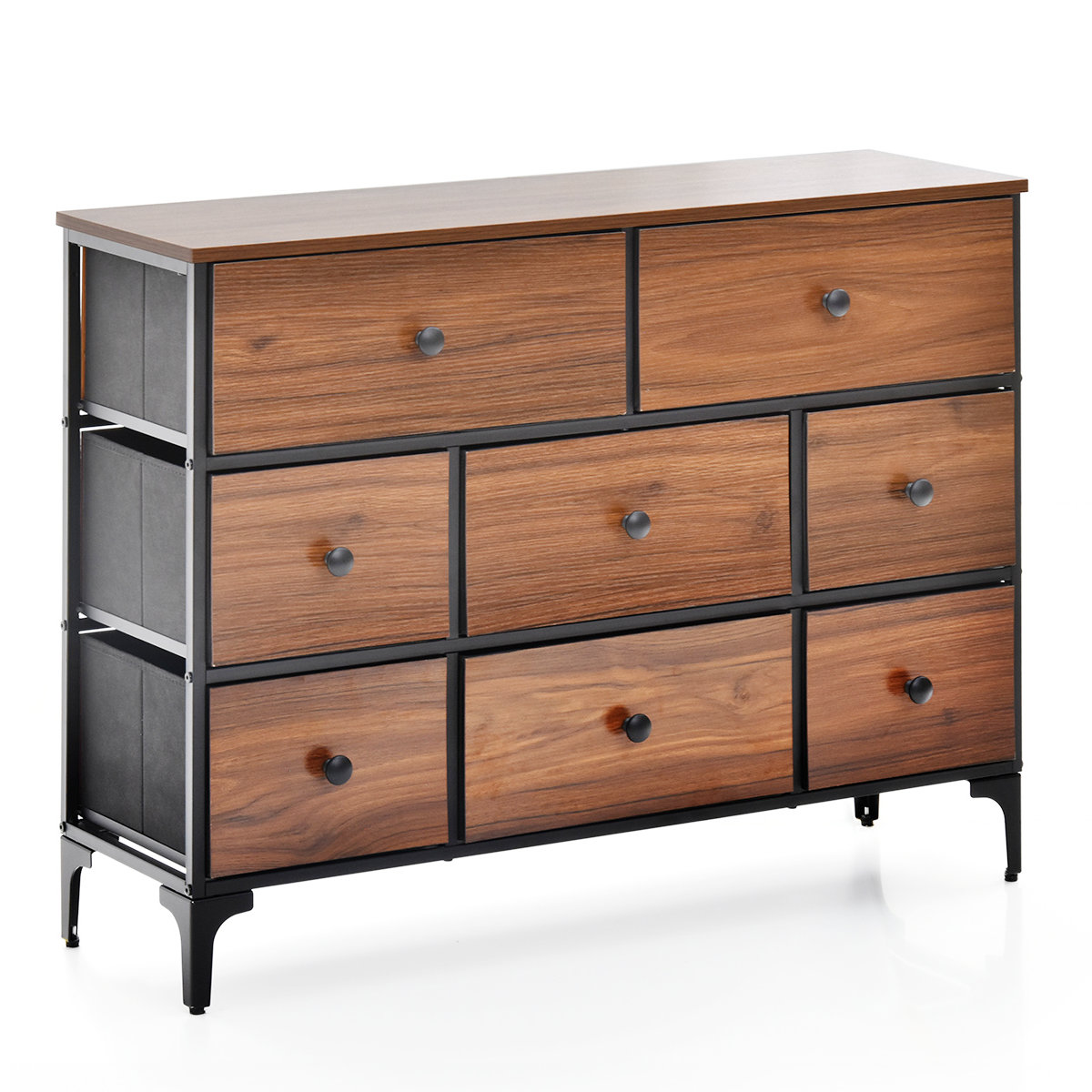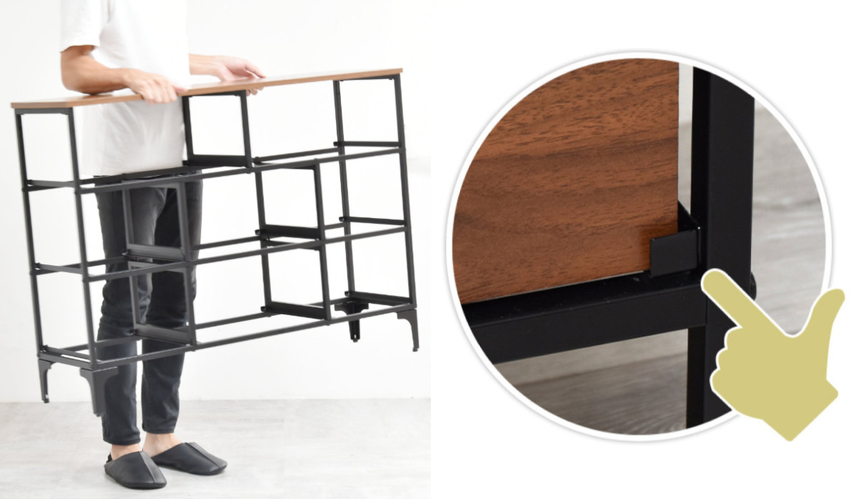 頑丈なスチールフレームで安定感があり、長く使える設計です。また、背面には引き出しの落下防止加工が施されているので、安全に収納できます。