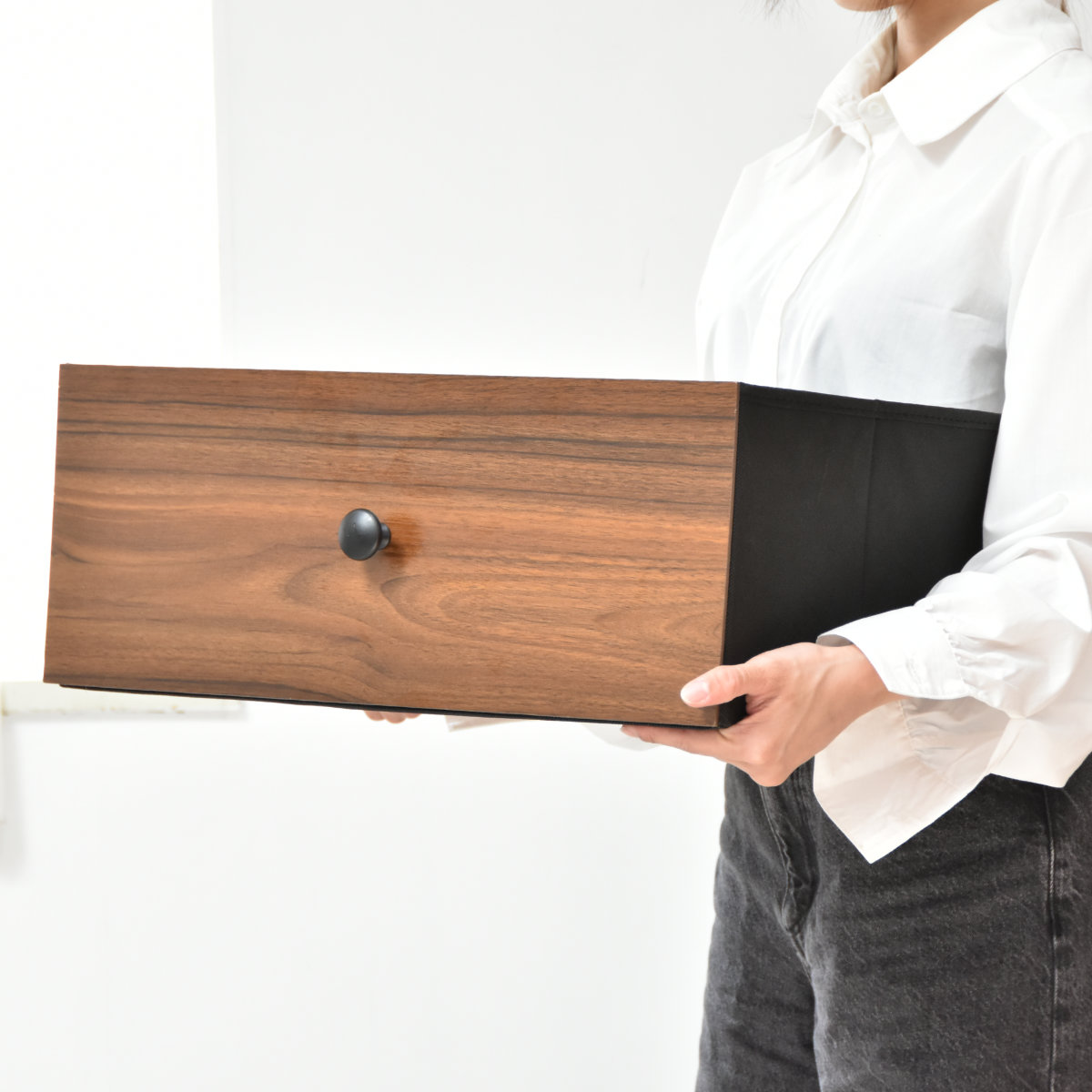 引出しの中敷きにはMDFを使用した底板を採用。型崩れしにくく、丈夫で耐久性にも優れています。通気性の高い不織布素材を使用しており、湿気や匂いがこもりにくく、カビの発生を抑えて清潔に使えます。
