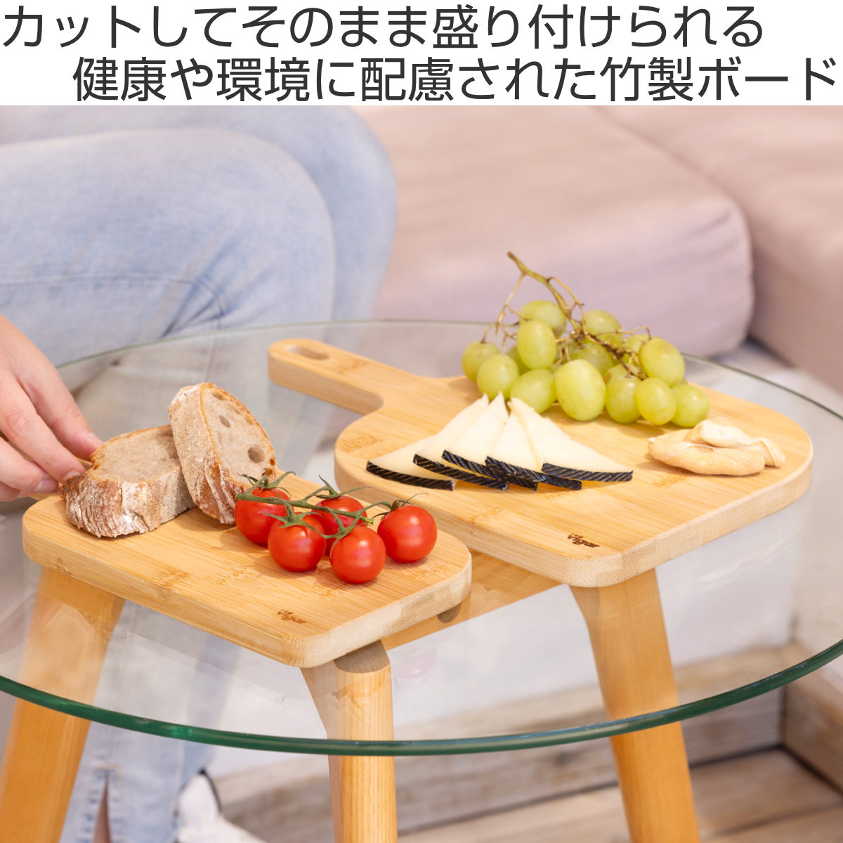 食材をカットしてそのまま食卓に運べるサービングボードです。前菜やパン、フルーツなどをスタイリッシュに盛り付けられます。持ち運びに簡単な持ち手がついています。健康や環境に配慮されているBPAフリー製品です。