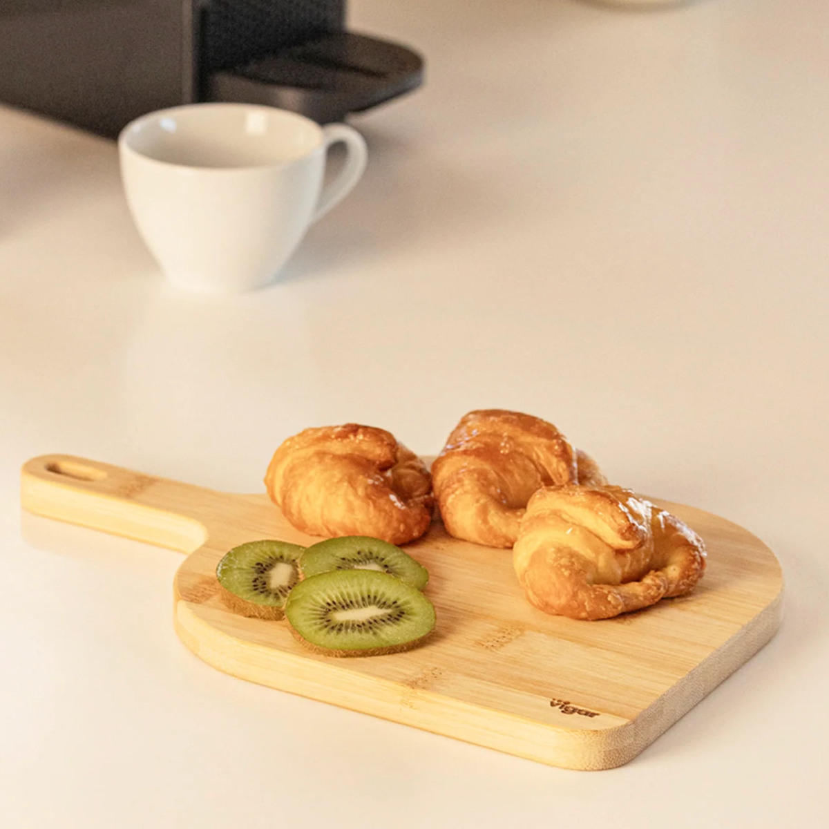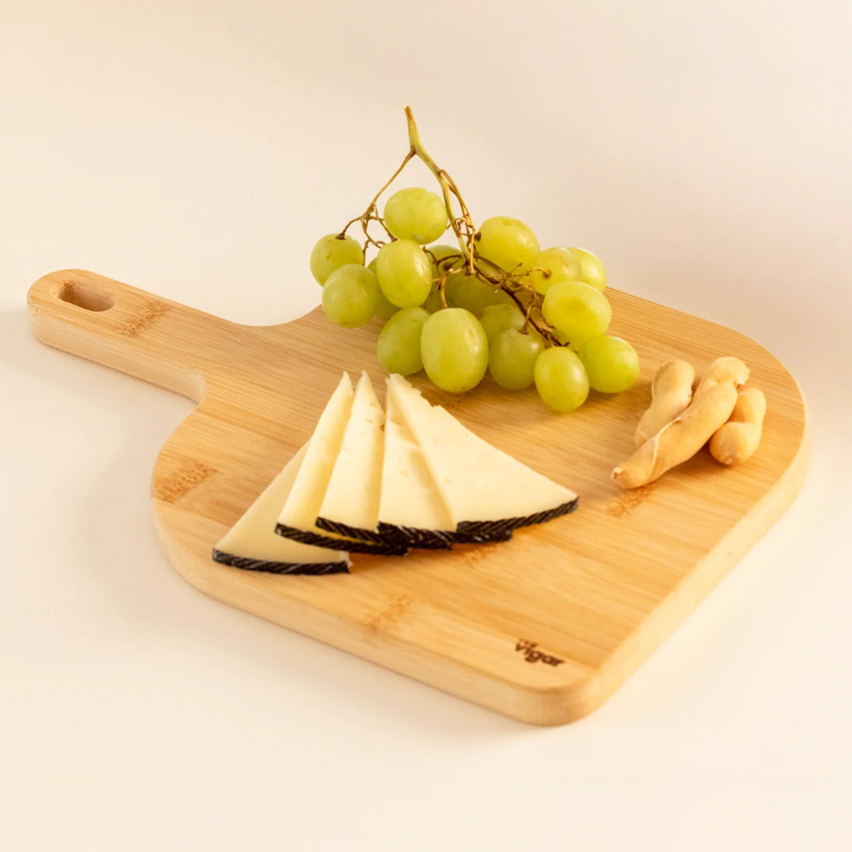 竹特有のまっすぐな木目と「Vigar」のロゴが入っています。前菜やパン、フルーツなどをスタイリッシュに盛り付けられます。
