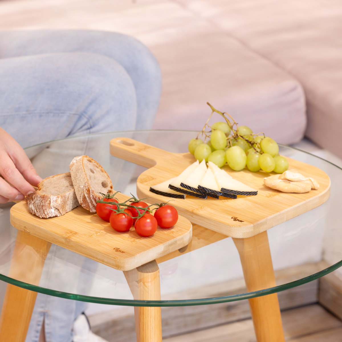 食材をカットしてそのままテーブルに持ち運べるサービングボードです。お皿に盛りつける手間が減り、洗い物も減らせる便利なアイテムです。