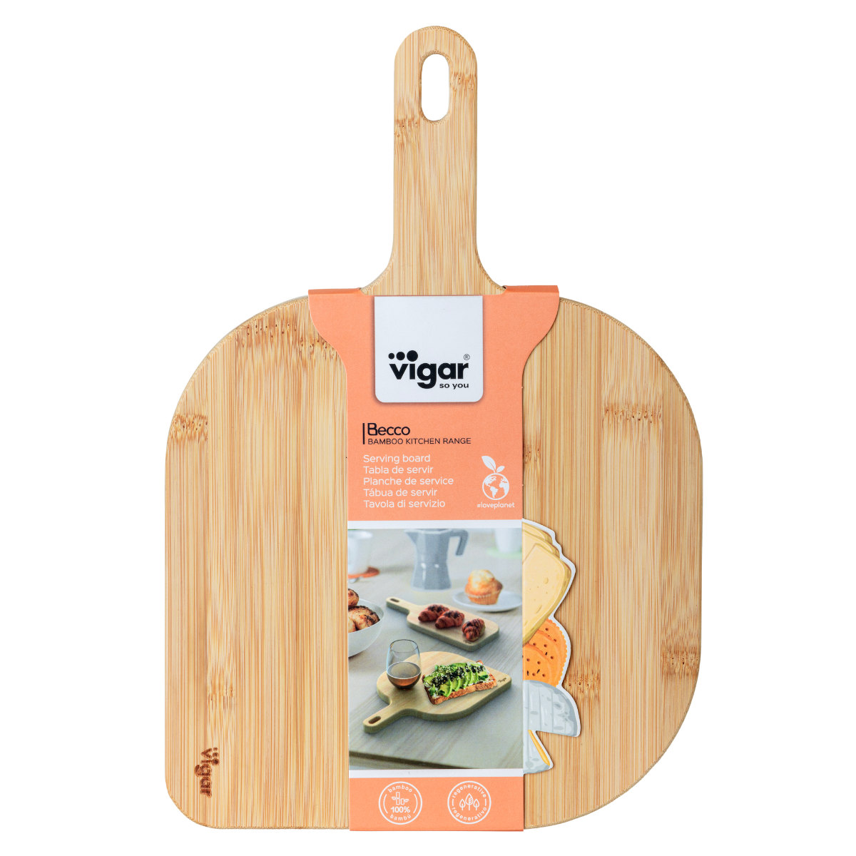 まな板 Vigar ベコ サービングボード ミディアム ( ヴィガール まないた バンブー 俎板 竹製 カッティングボード 正方形 プレート ボード トレー 皿 抗菌 防臭 竹 衛生的 取っ手付き おしゃれ )