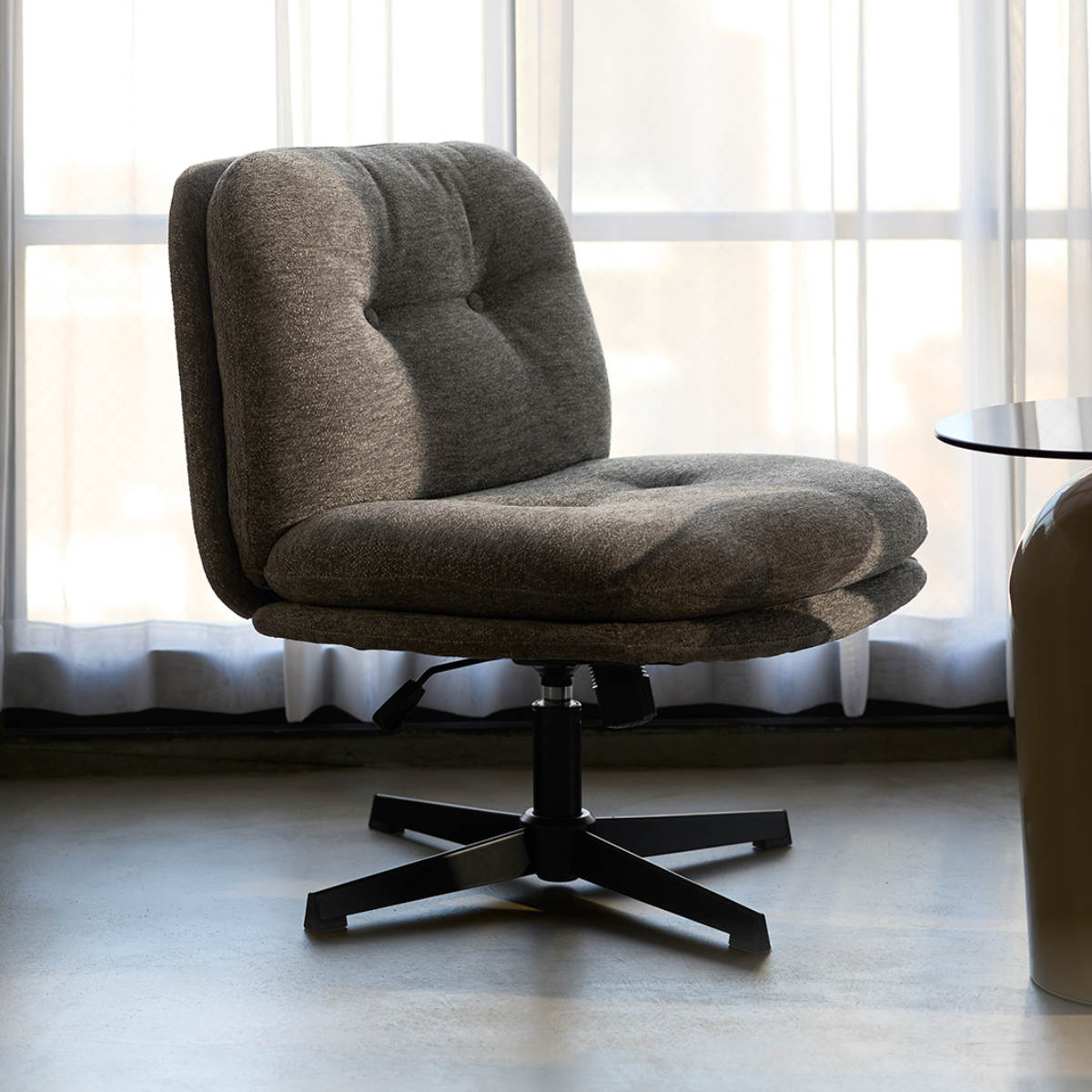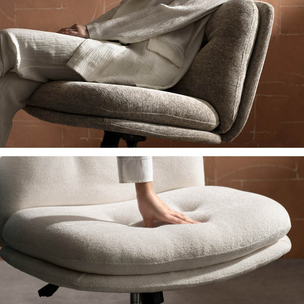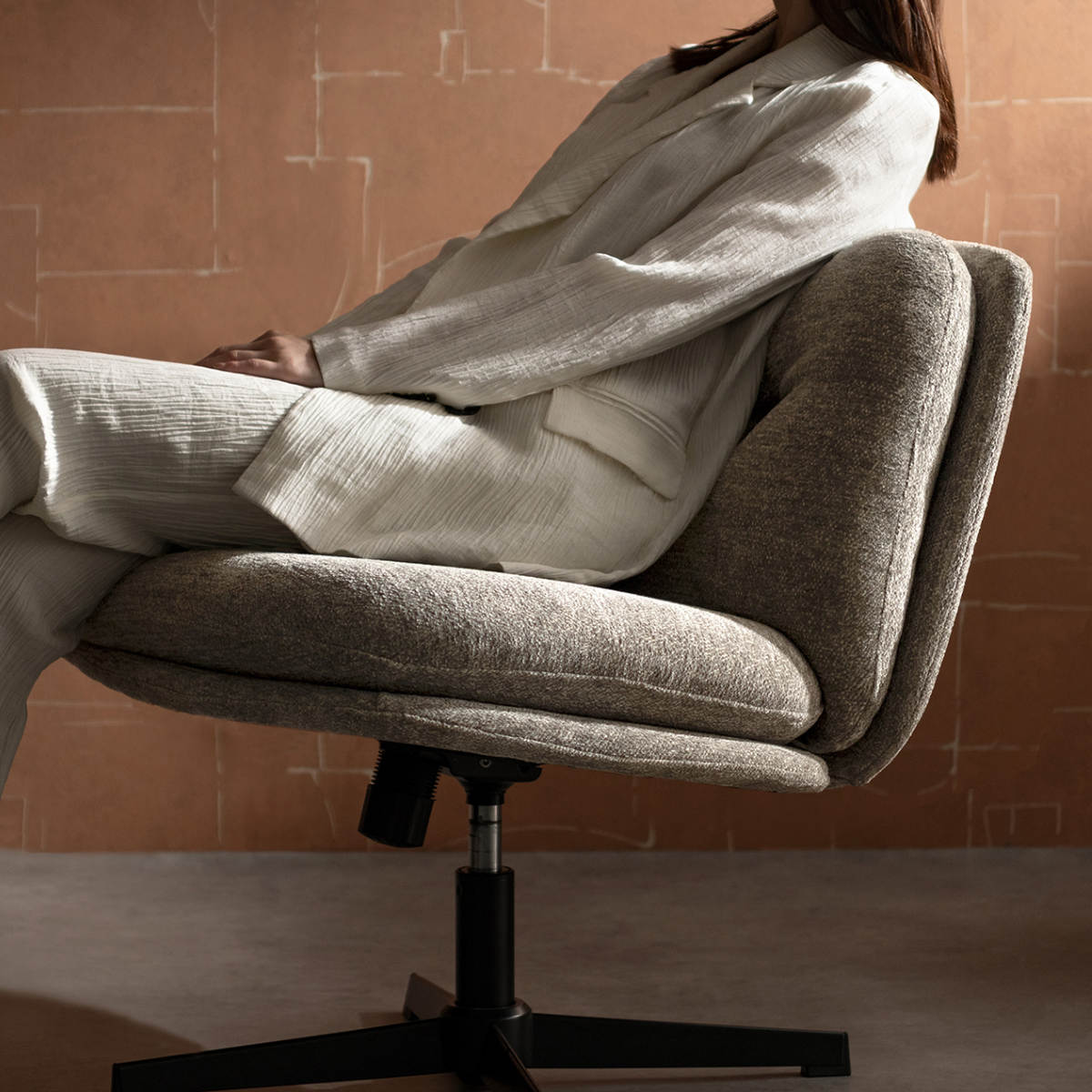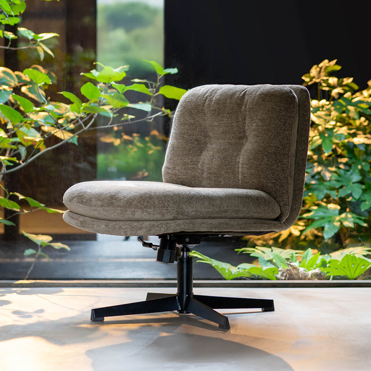ラウンジチェア 座面高43~50cm 昇降式 幅広 Anela Signature Studio オフィスチェア ( チェア 椅子 イス シェニール生地 肘なし 回転チェア ロッキング機能 座面 広い 高さ調節 チェアー いす リビング 回転椅子 リラックスチェア ) 【グレージュ】