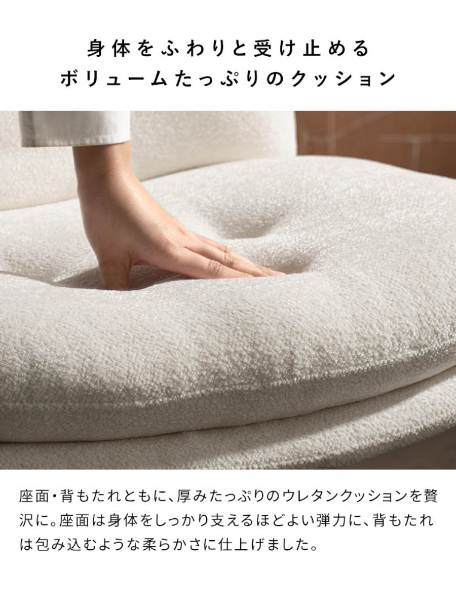 関連キーワード:北欧風 長時間 クッション 座り心地 快適 1人掛け ゆったり おしゃれ リラックス 1人用 回転 アームレス ボリュームクッション 360度回転 立ち座り ラク 楽 作業 読書 高さ 調整 調節 ファブリック パーソナルチェア