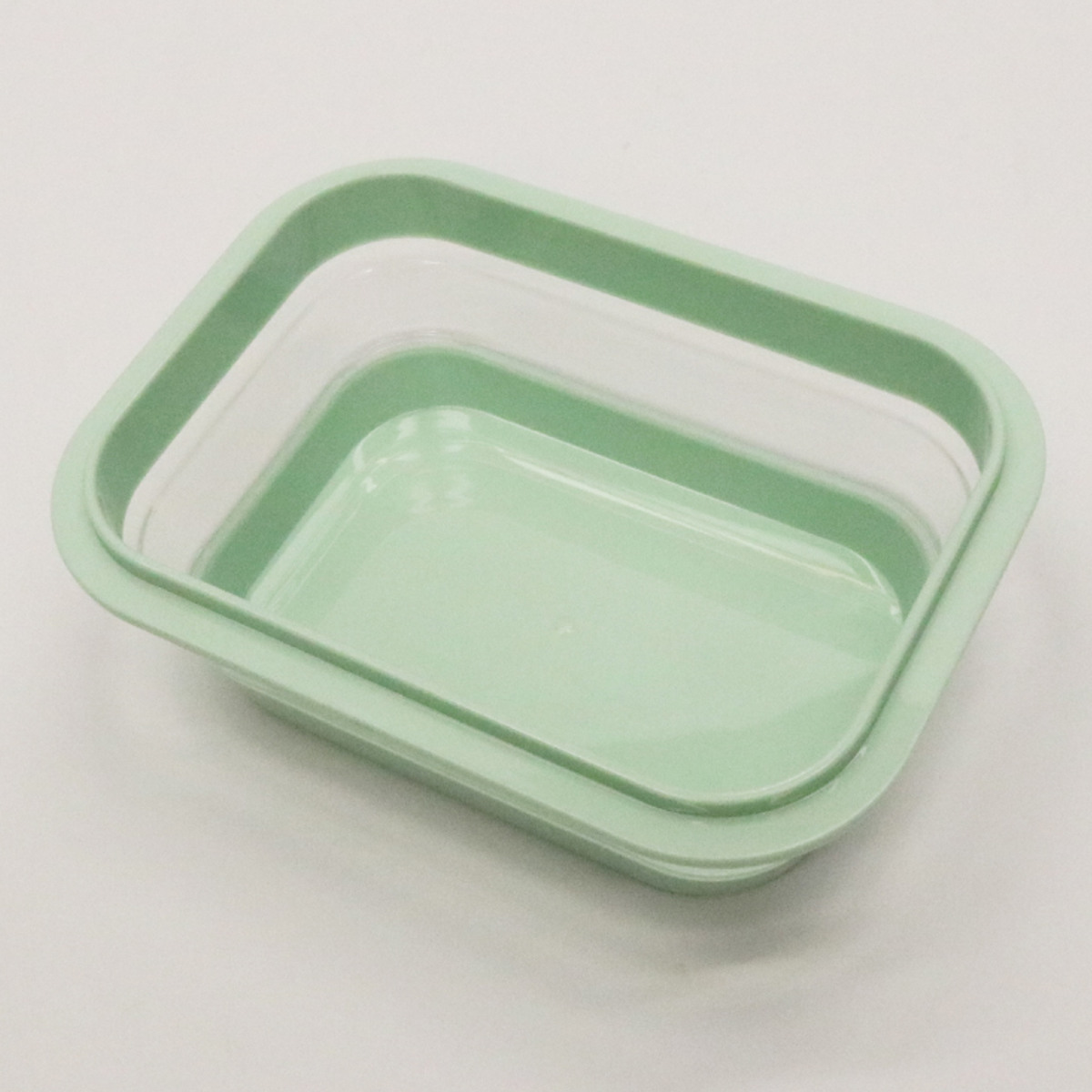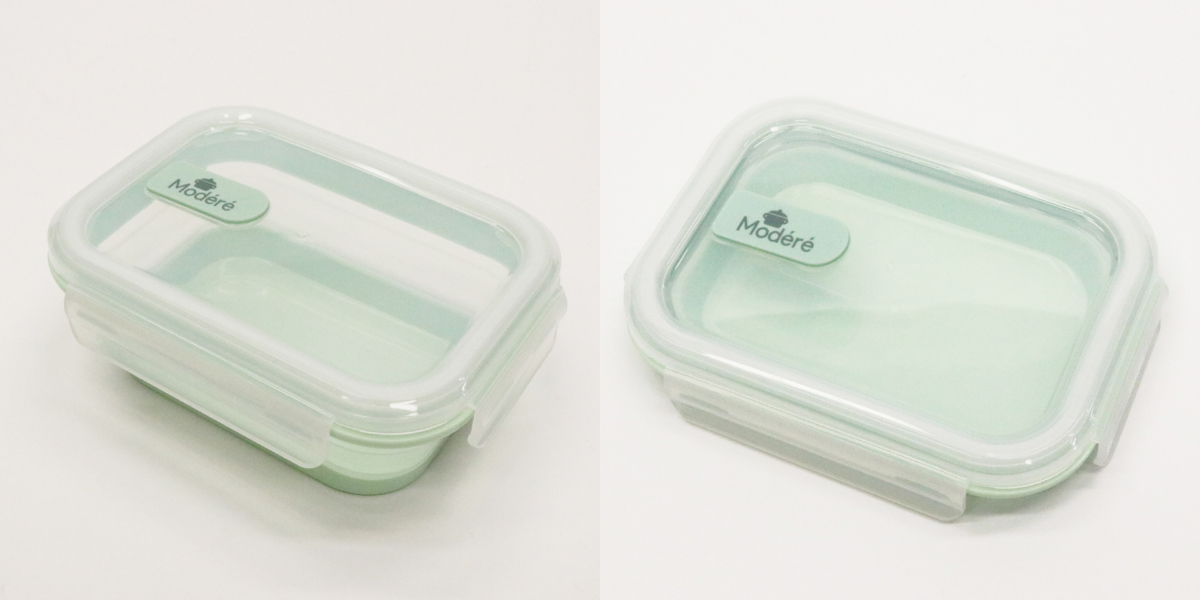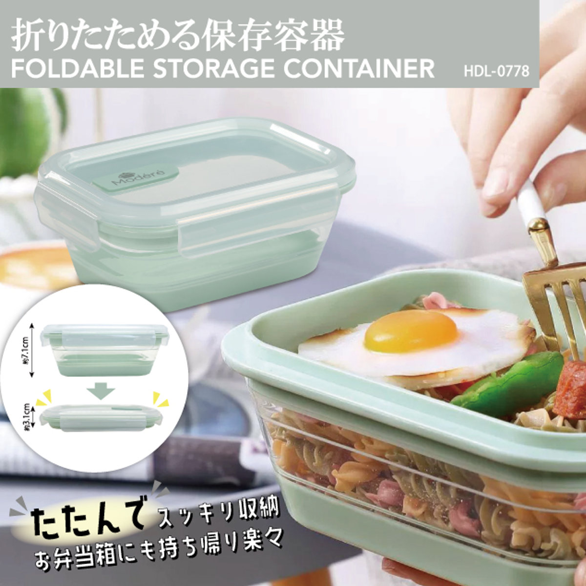 持ち運びに便利な折りたためる保存容器です。折りたためば高さはわずか3.1cmととても薄く、コンパクトになるため、お弁当箱としても重宝します。密閉できるので、汁気のあるおかずも安心して持ち運べます。