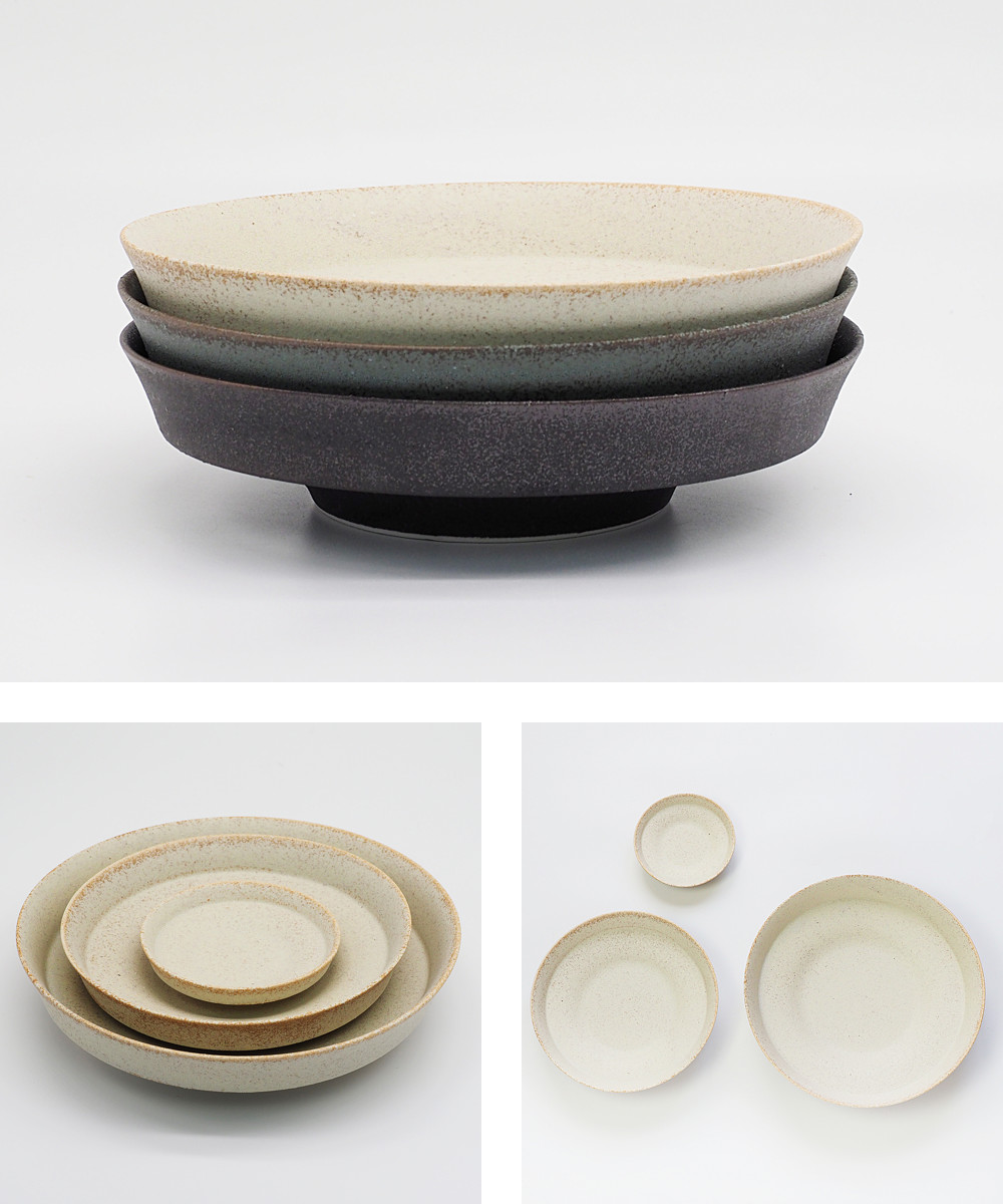 盛りやすい器は、窯変する味わい深い釉薬で仕上げているのが特徴です。そのため、釉薬のつき方や窯内での熱の当たり方などにより、仕上がりに個体差があります。特に、ホワイトとグレーは窯変が現れやすくなっております。一つ一つ違う味わいを見せる、窯変釉を使った器をお楽しみいただければと思います。以上、あらかじめご了承ください。