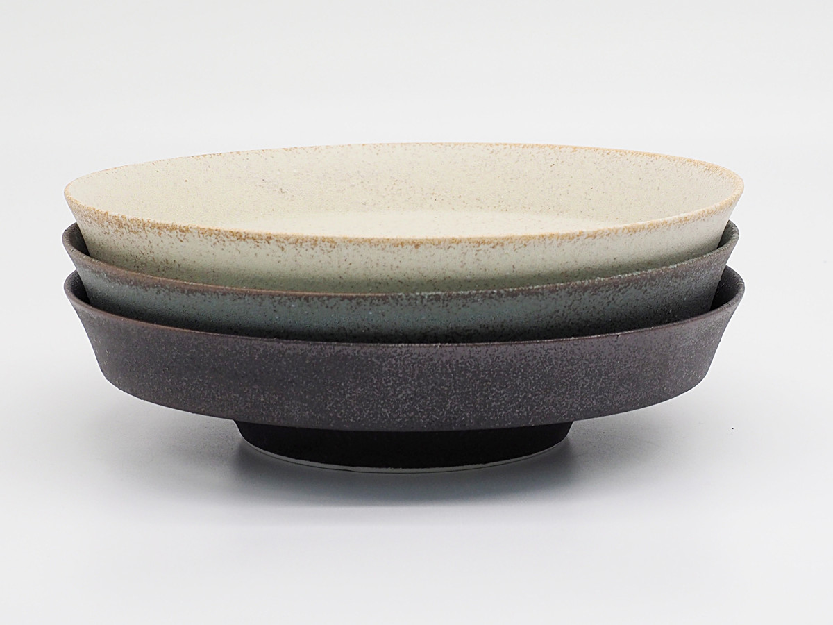 盛りやすい器は、窯変する味わい深い釉薬で仕上げているのが特徴です。そのため、釉薬のつき方や窯内での熱の当たり方などにより、仕上がりに個体差があります。特に、ホワイトとグレーは窯変が現れやすくなっております。一つ一つ違う味わいを見せる、窯変釉を使った器をお楽しみいただければと思います。以上、あらかじめご了承ください。