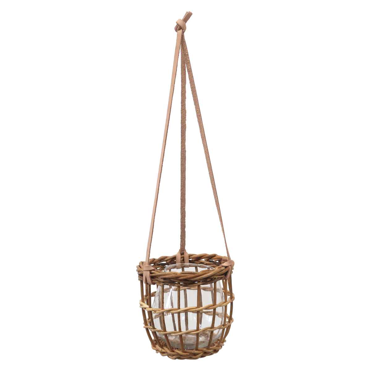花瓶 ハンギング アラログハンギングフラワーベース ラウンド S ( 花ビン 花びん 花器 フラワーベース フラワー 花 飾る ガラス製 かご カゴ 籐 ラタン 天然素材 ハンギングポット ハンギングバスケット ラタンバスケット 吊り下げ )