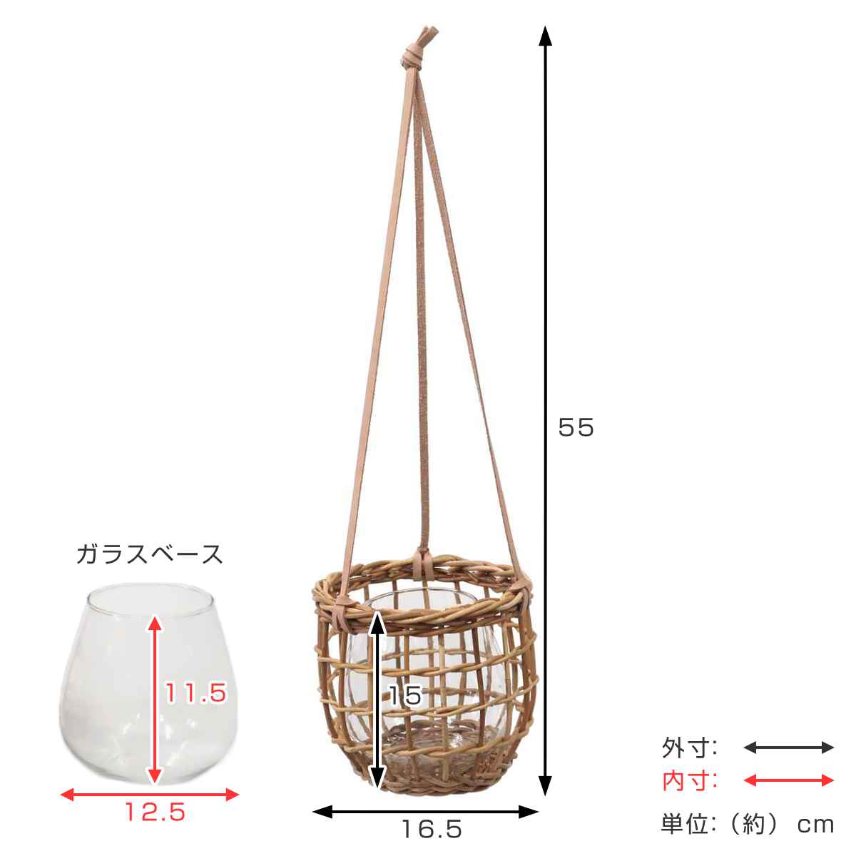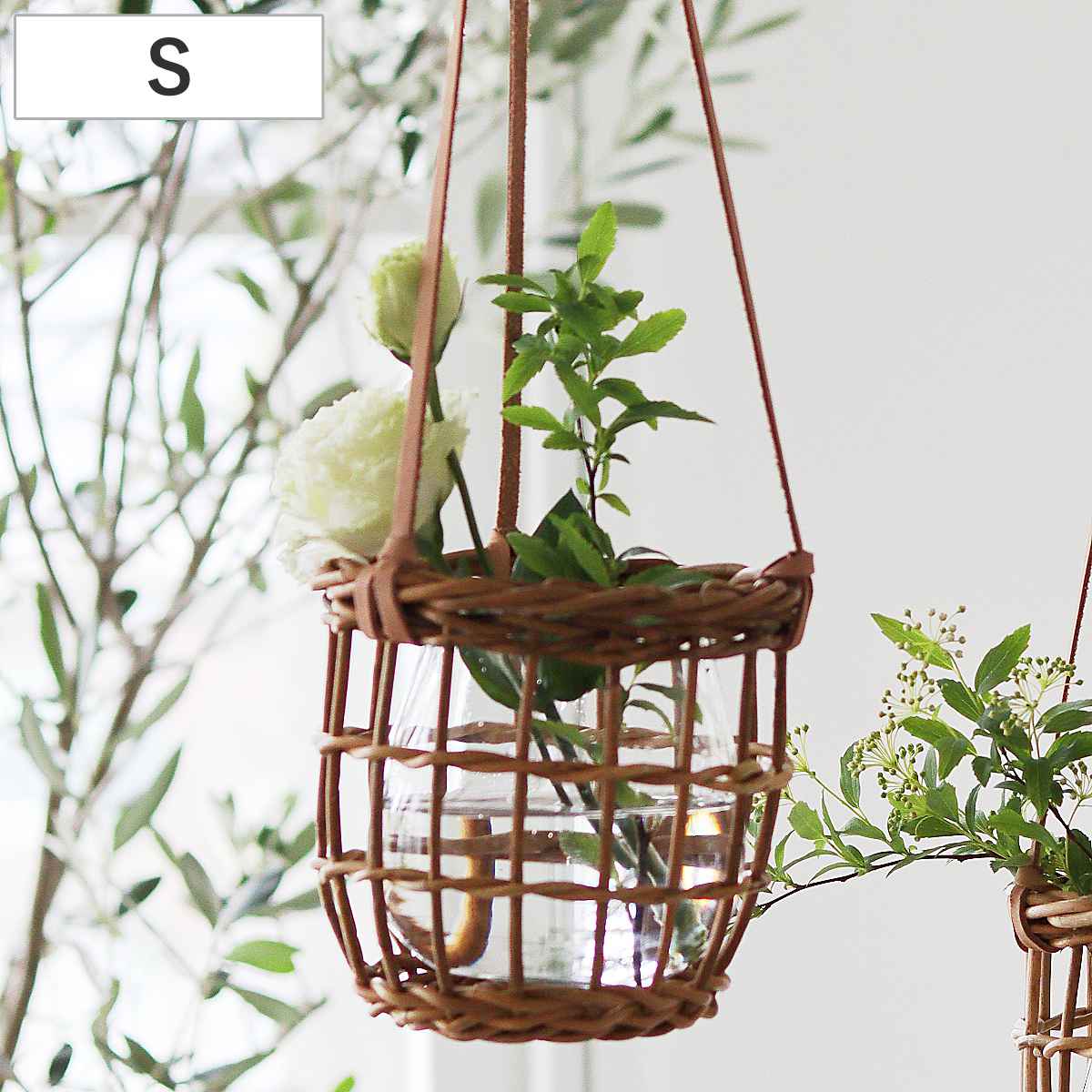 花瓶 ハンギング アラログハンギングフラワーベース ラウンド L ( 花ビン 花びん 花器 フラワーベース フラワー 花 飾る ガラス製 かご カゴ 籐 ラタン 天然素材 ハンギングポット ハンギングバスケット ラタンバスケット 吊り下げ )