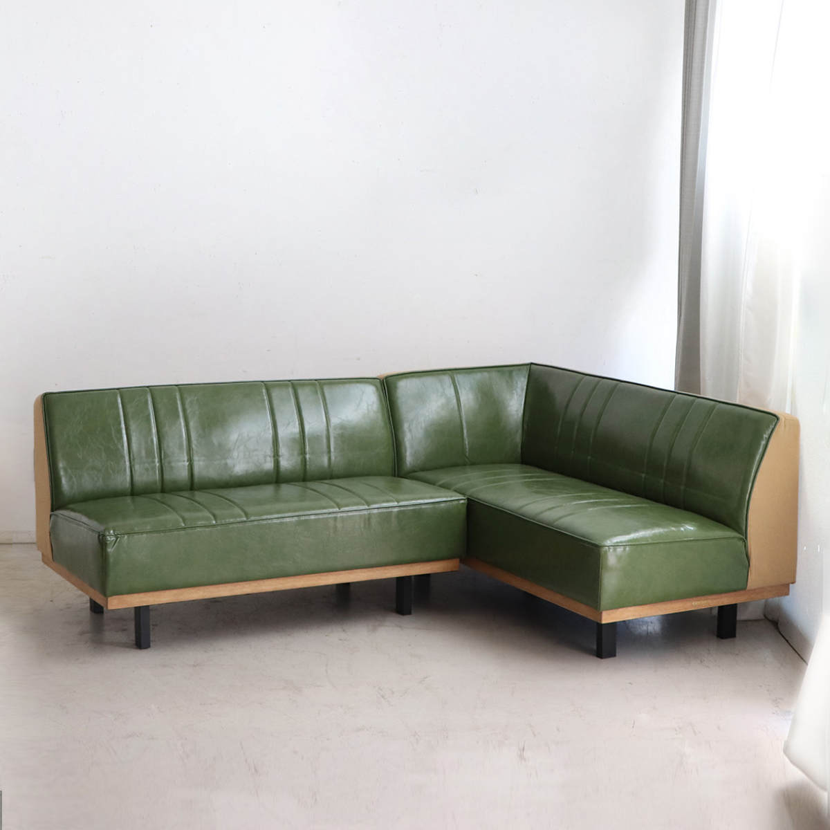 ソファ 2点セット R ベンチ+カウチ 2人掛け PULLEY LDSOFA SET ( ソファー リビングソファ 右肘 レイアウト 自由 L字 セパレート レザー調 コーナーソファ 脚付き リビング コンパクト 組み合わせ 肘掛け ) 【グリーン】のレビュー