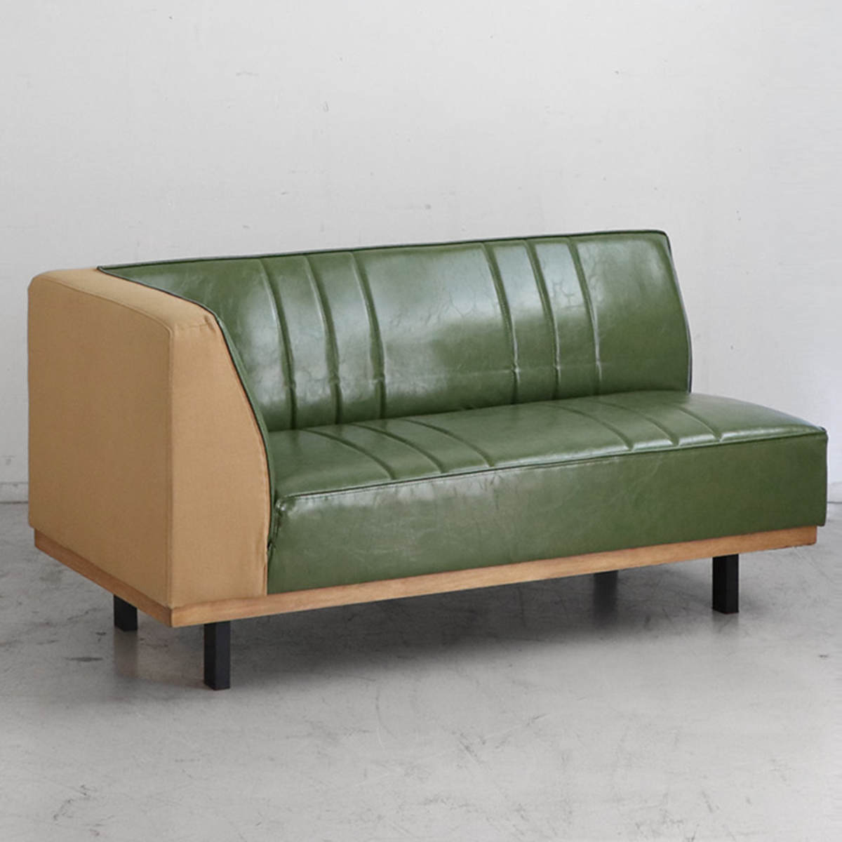 ソファ 2点セット R ベンチ+カウチ 2人掛け PULLEY LDSOFA SET ( ソファー リビングソファ 右肘 レイアウト 自由 L字 セパレート レザー調 コーナーソファ 脚付き リビング コンパクト 組み合わせ 肘掛け ) 【グリーン】